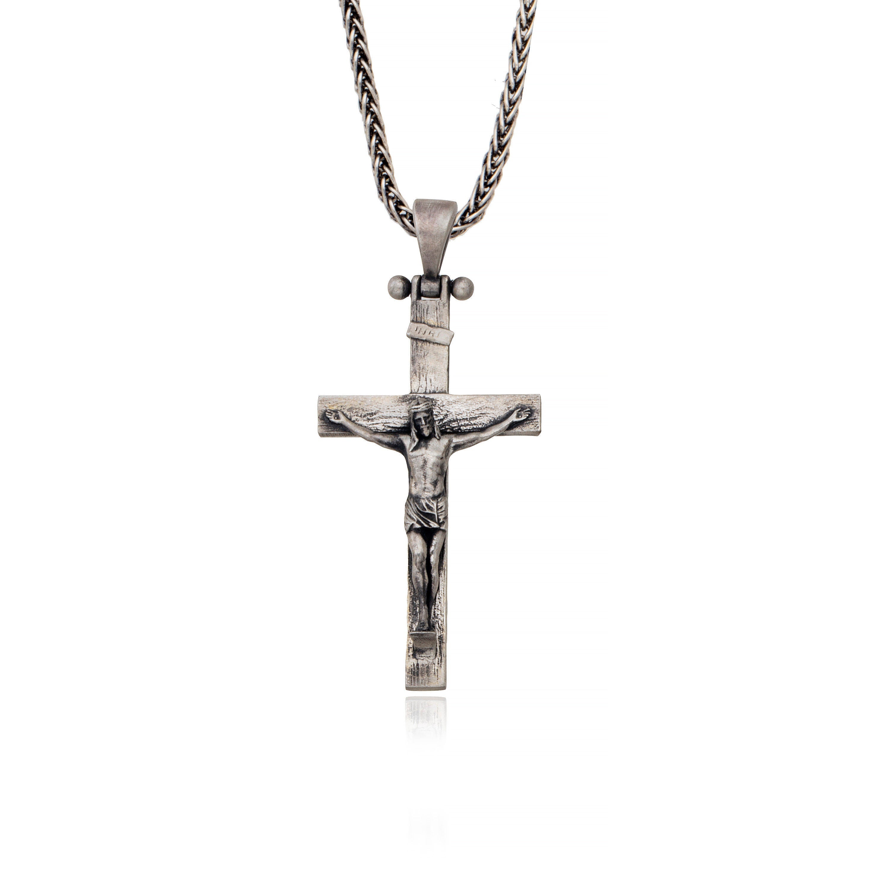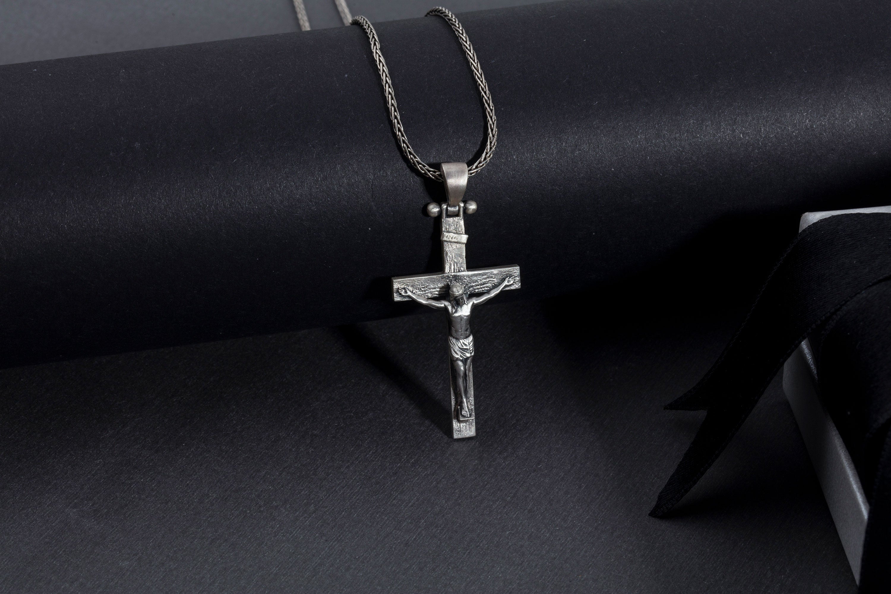 925 Sterling Silver Cross Necklace For Men - Jesus Crucifix Pendant