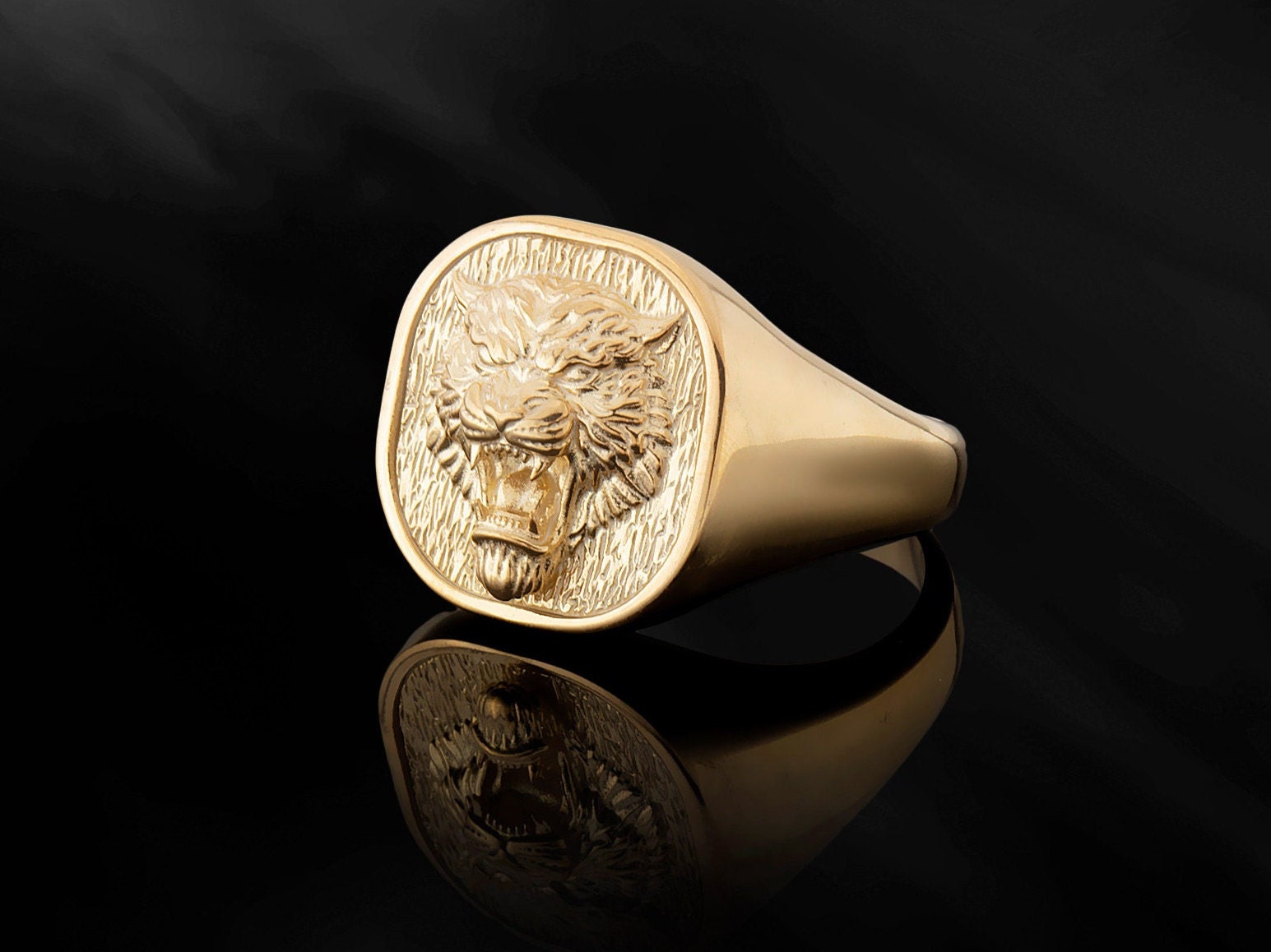 18K Gold Tiger Rings, 14K Gold Signet Animal Rings, 10K Tiger Head Ring, Gifts For Men, Men's Statement Rings, Unique Gift For Father's Day