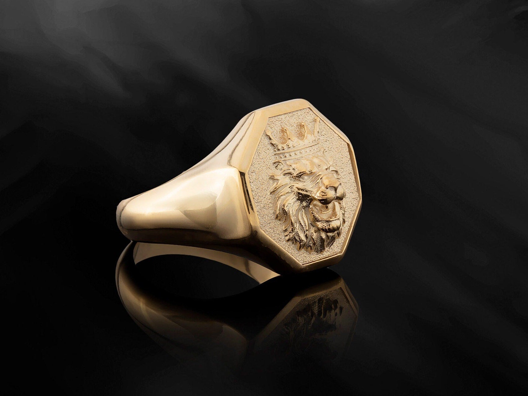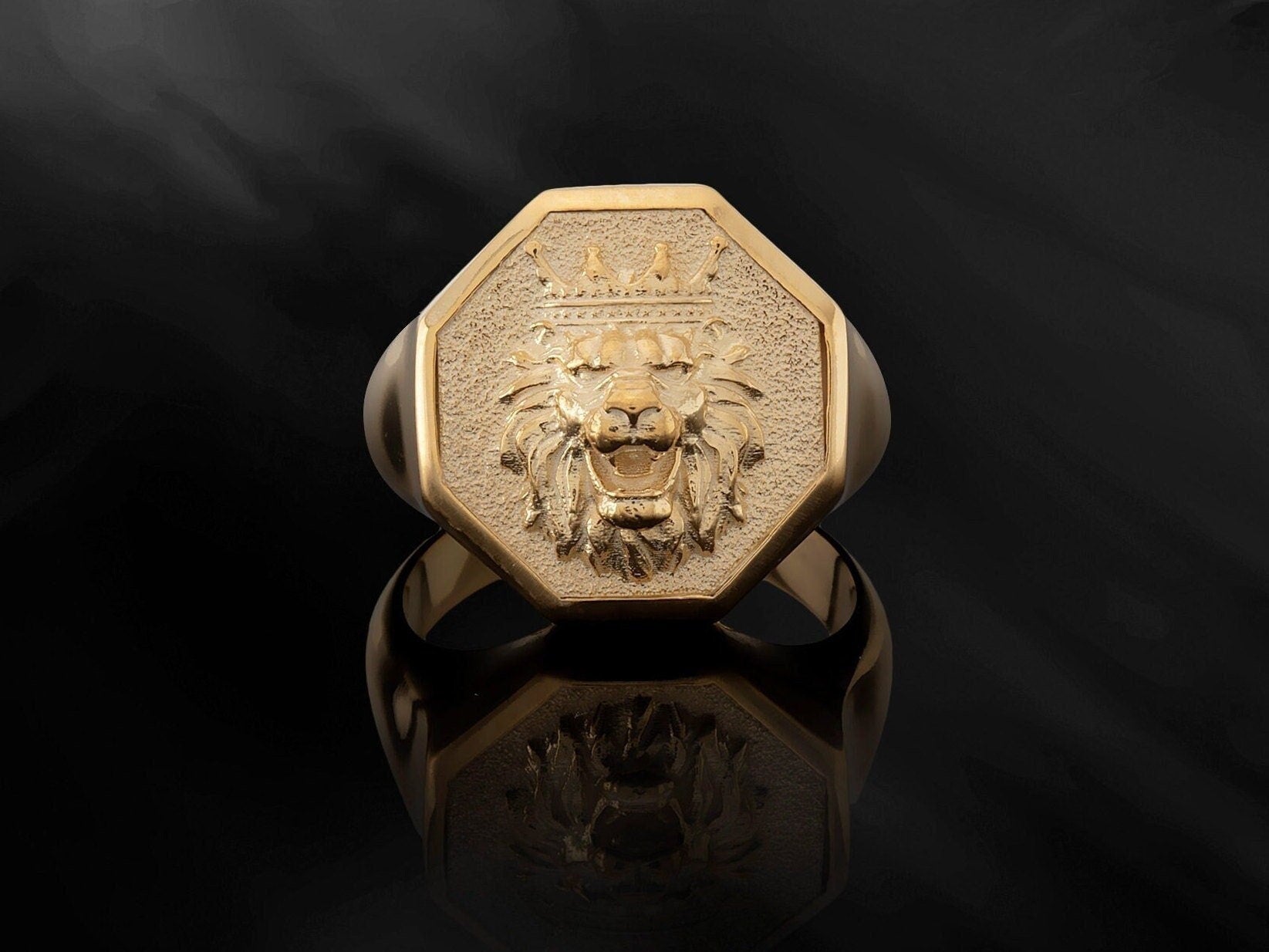 14K Solid Gold Lion King Rings, 10K Lion Head Statement Ring, Animal Signet Rings For Men, Men's Gift Jewelry, Unique Gift For Father's Day