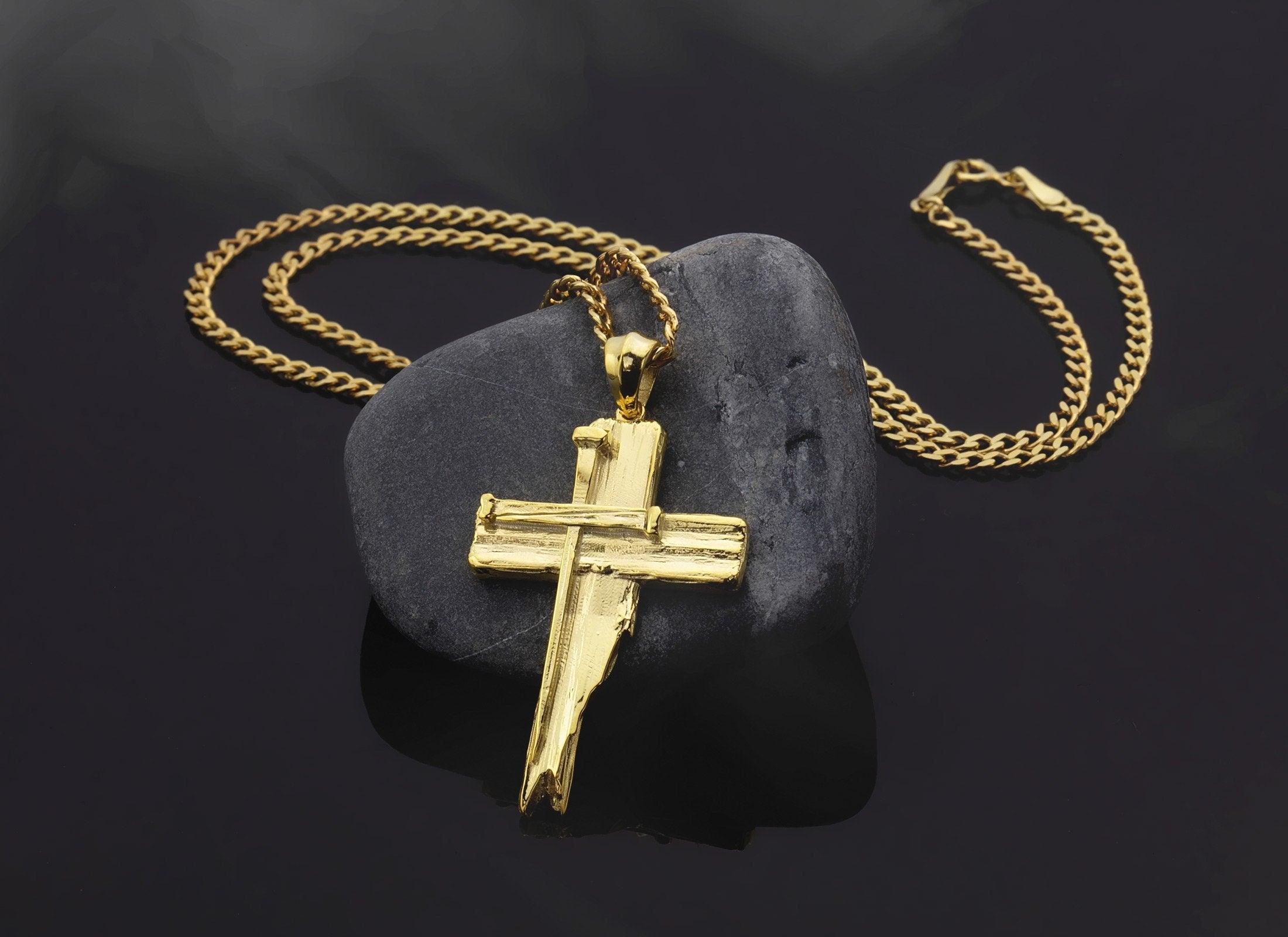 18K Solid Gold Cross Necklace For Men, Gold Cross Cuban Chain Necklace, Crucifix Necklaces, Religious Jewelry, Unique Gift For Father's Day