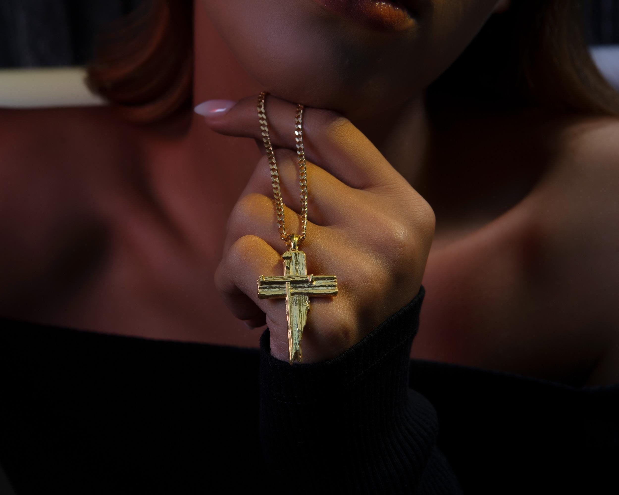 18K Solid Gold Cross Necklaces For Men, 14K Gold Jesus Crucifix Cuban Chain Necklace, Unisex Religious Jewelry, Unique Gift For Father's Day