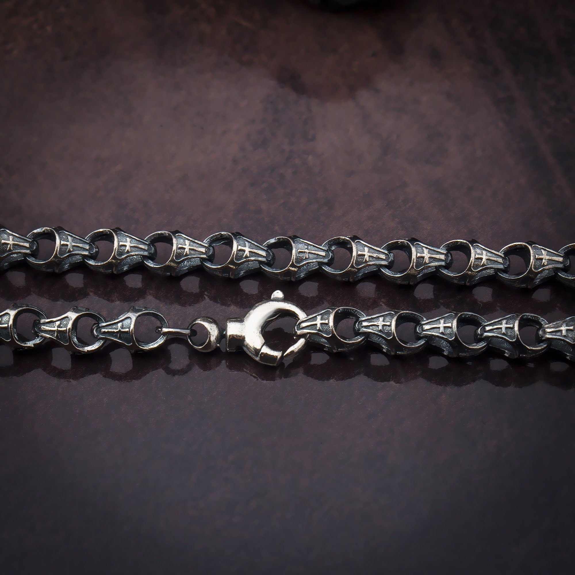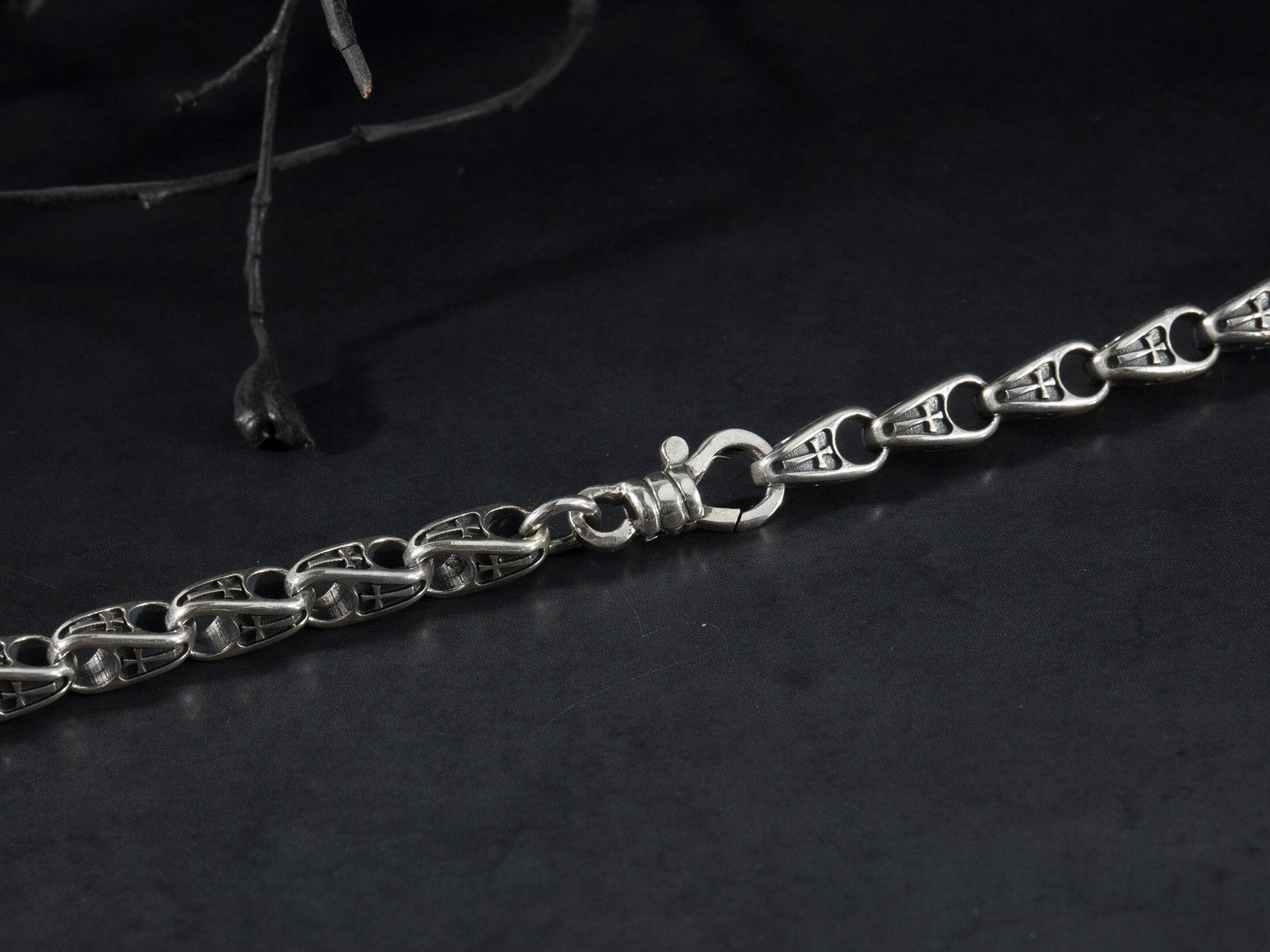 Cross Patterned Chain Bracelet, Men's Chain Bracelets, Oxidized Silver Chain Men Gifts, Unique Cross Bracelet, Unique Gift For Father's Day