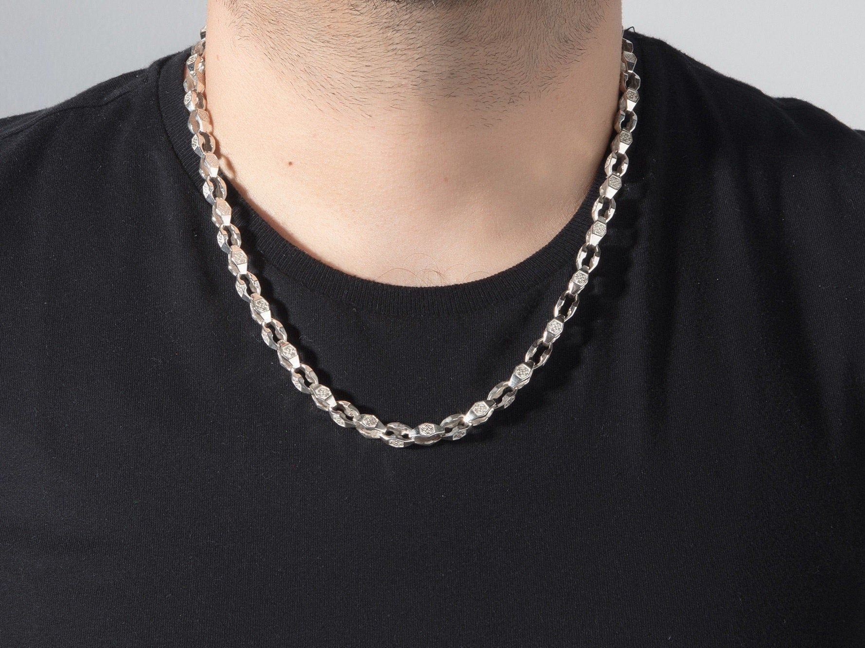 Chunky Chain, 925 Sterling Silver Byzantine Chain, Chain Necklace For Men's, Gift For Dads, Mariner Man Chain, Unique Gift For Father's Day