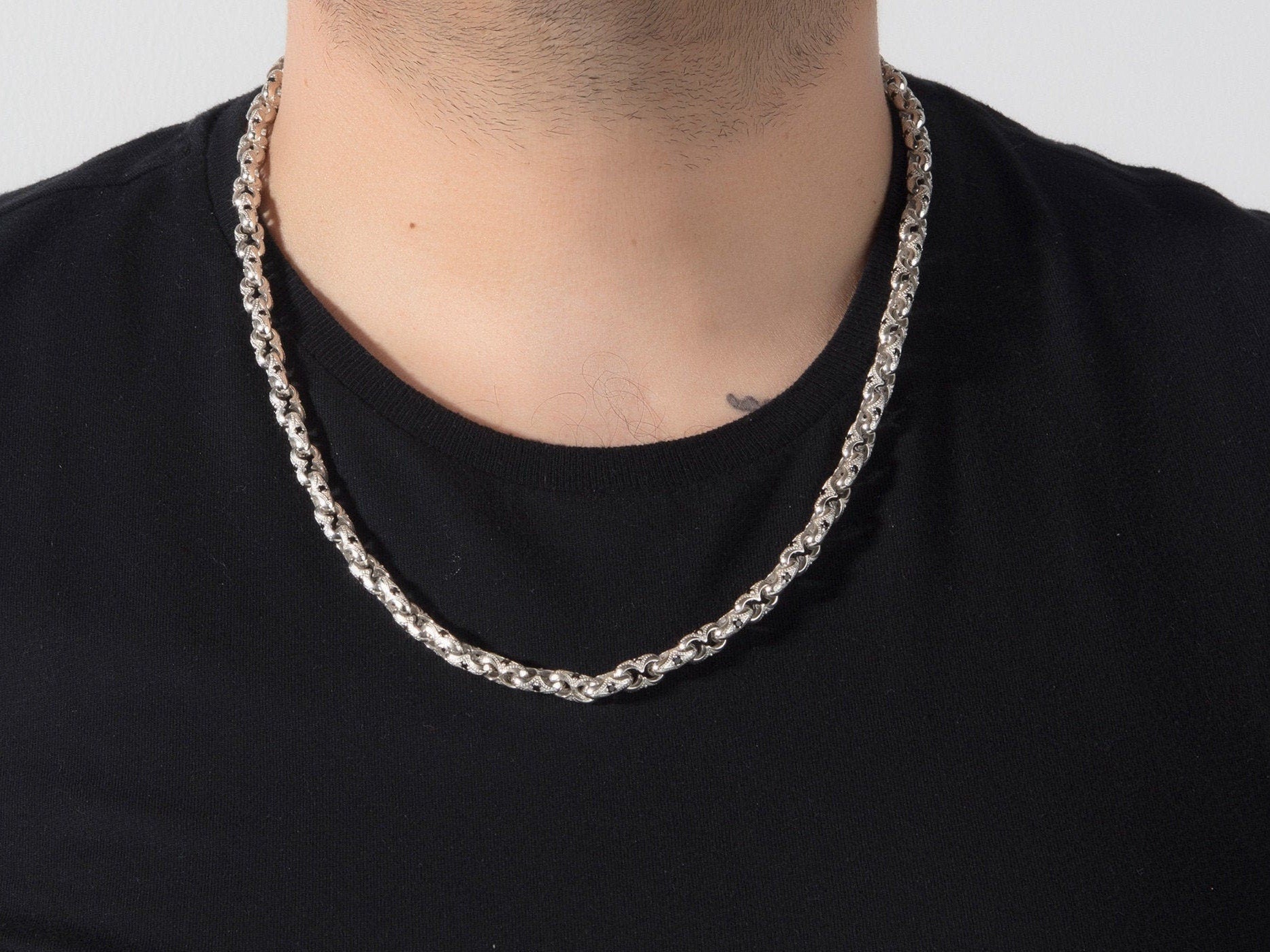 Chain Necklace For Man, Bali Byzantine Chain, Chunky Chain Necklace, Sterling Silver Chain, Gift For Father's, Unique Gift For Father's Day