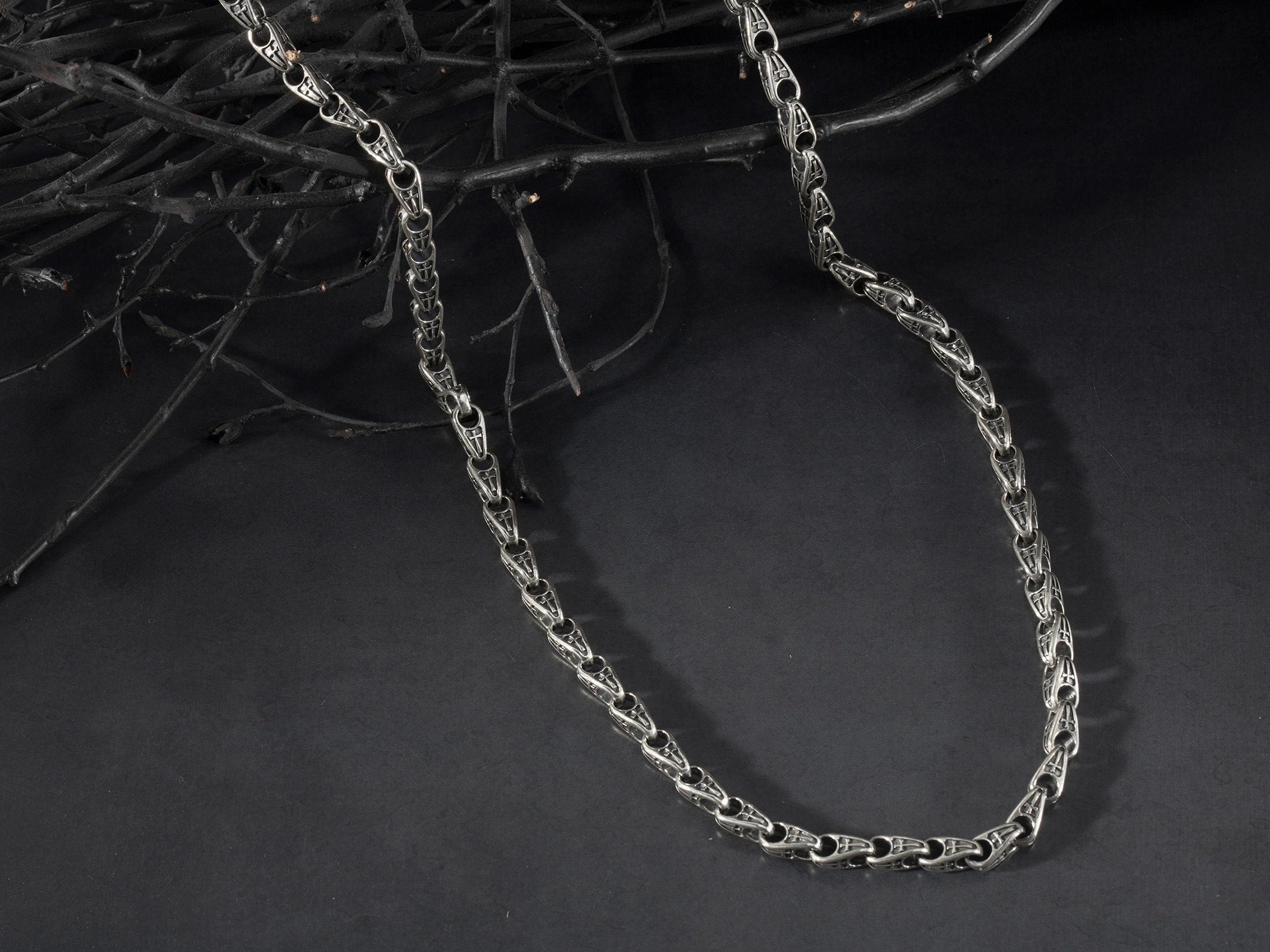 Cross Patterned Chain Necklace, Chain Necklace For Man, 925 Silver Unique Oxidized Silver Chain, Gift For Dad, Unique Gift For Father's Day