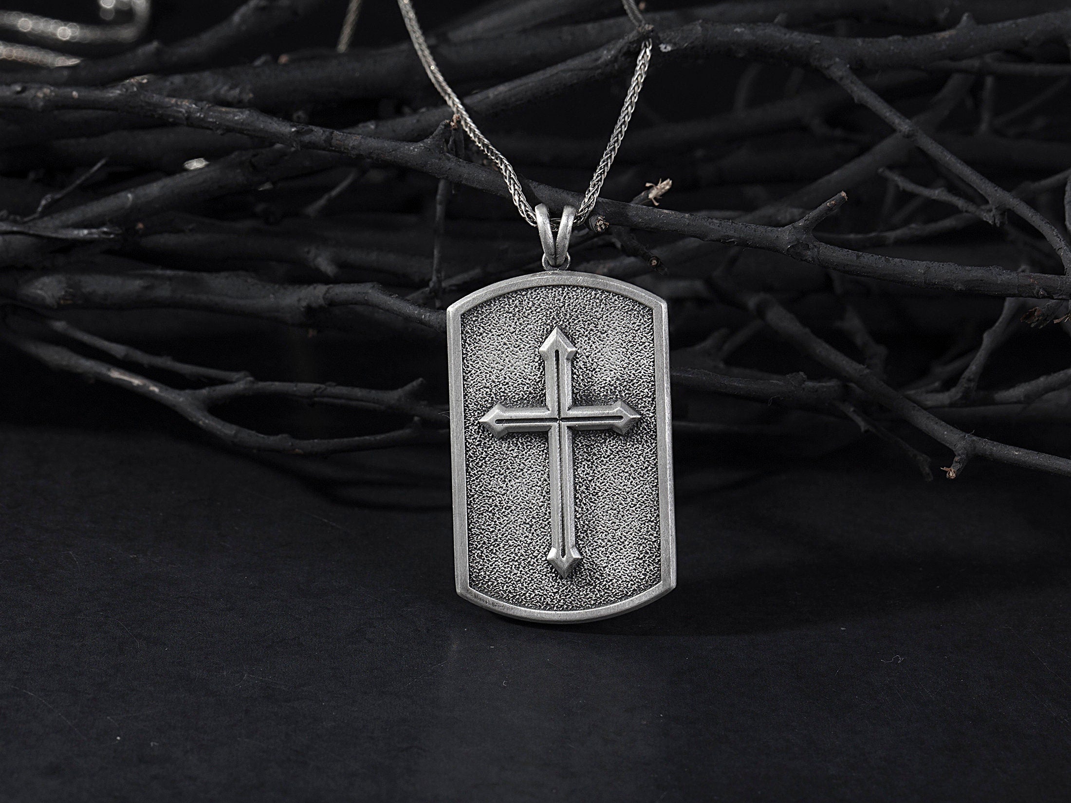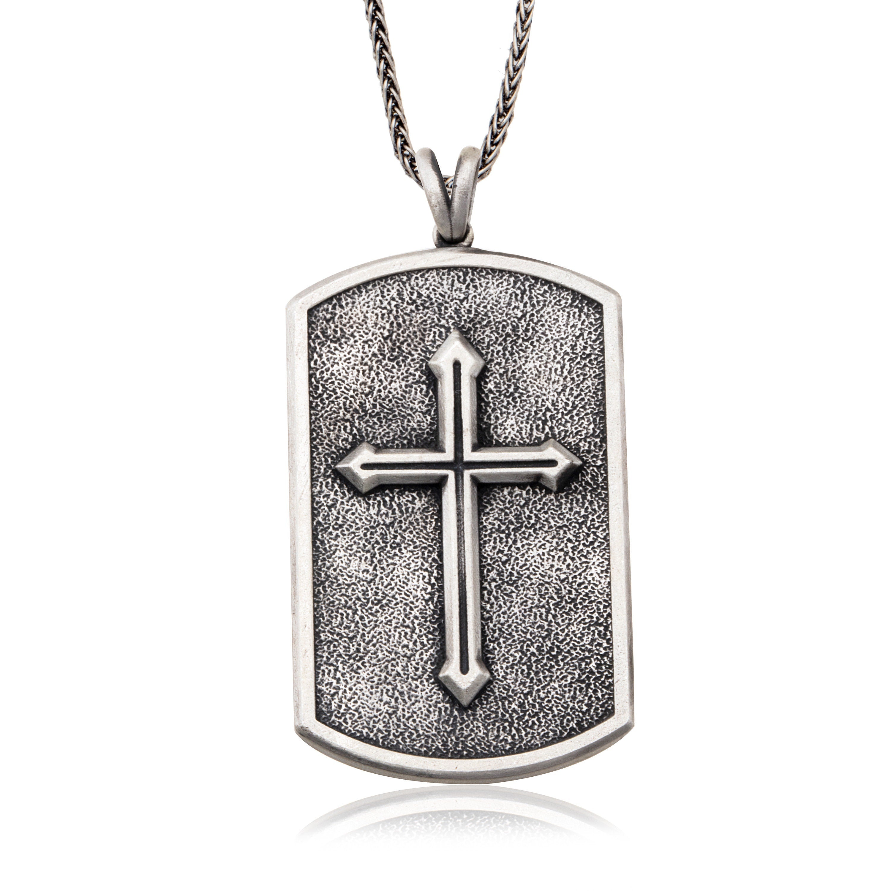 Oxidized 925 Silver Cross Dog Tag Necklace