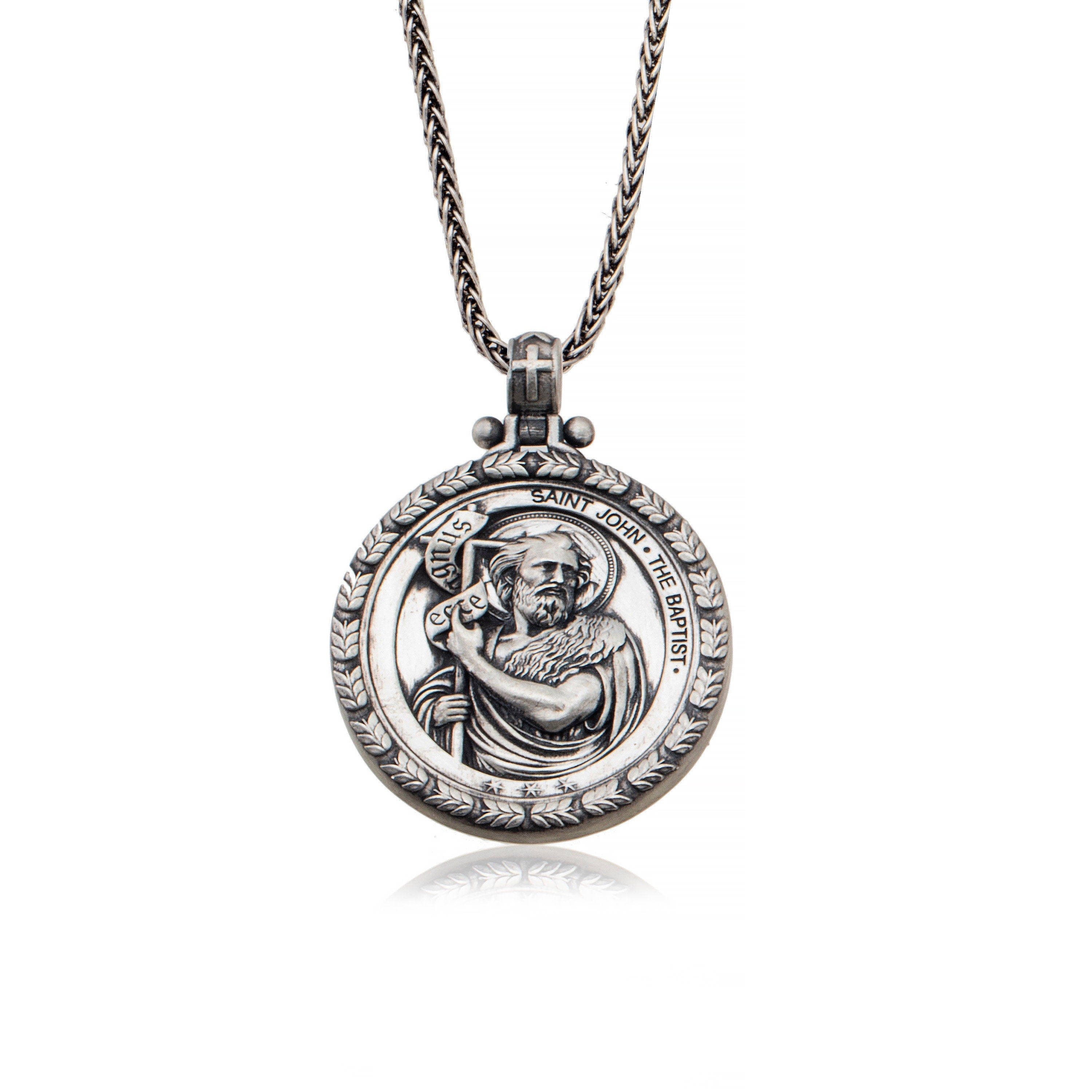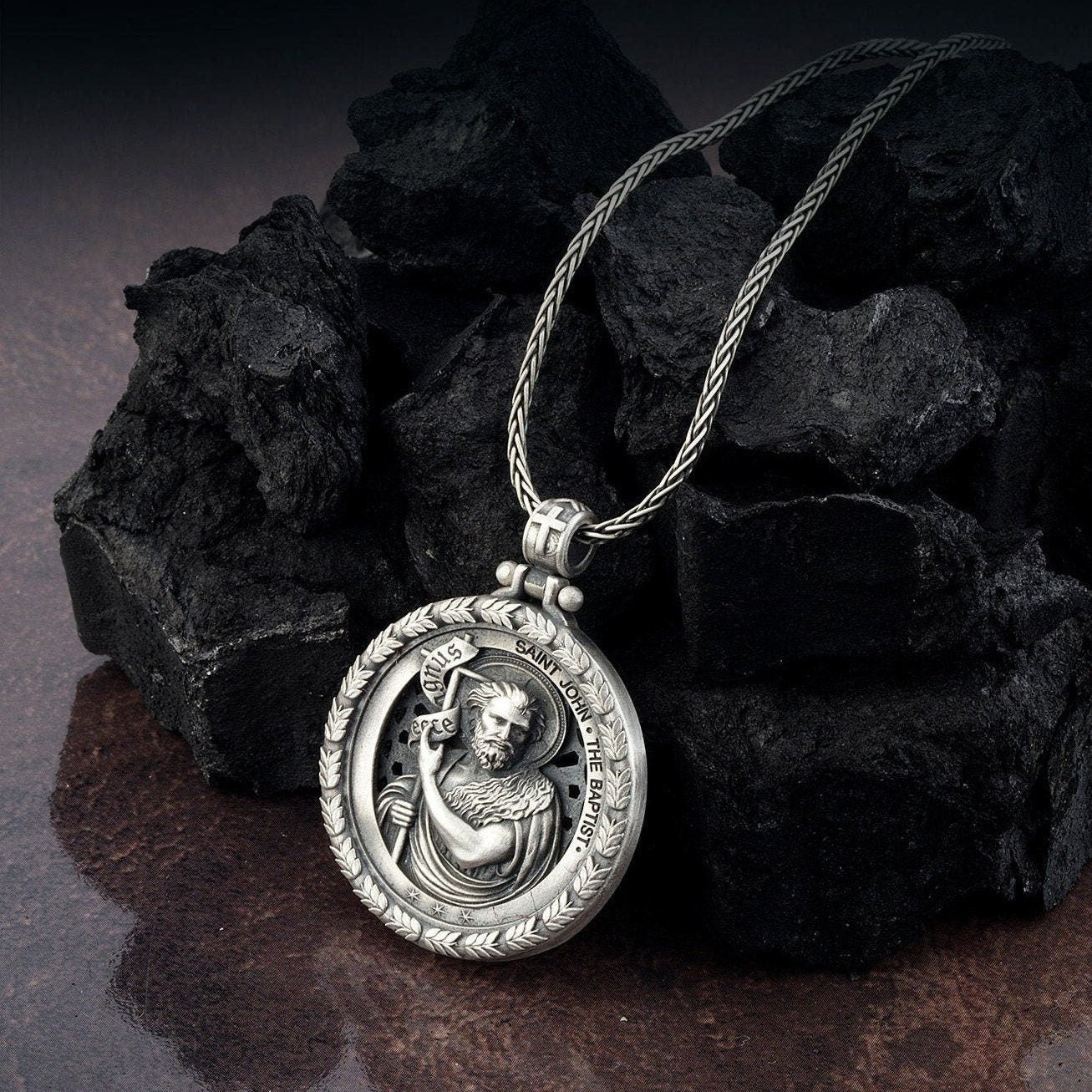 Saint John the Baptist Silver Necklaces, Saint John Pendants, Religious Man Medallion, Christian Men Jewelry, Unique Gift For Father's Day