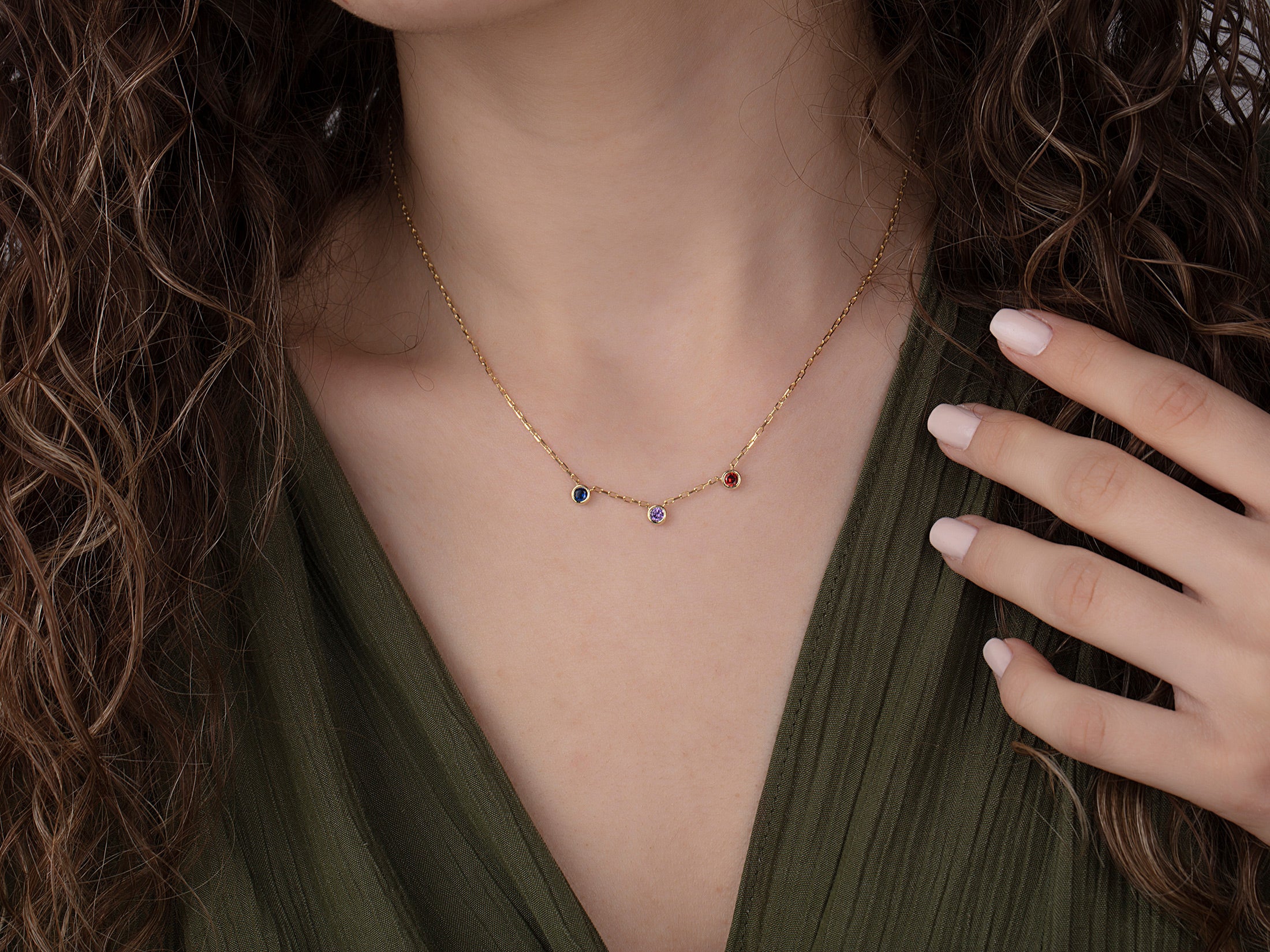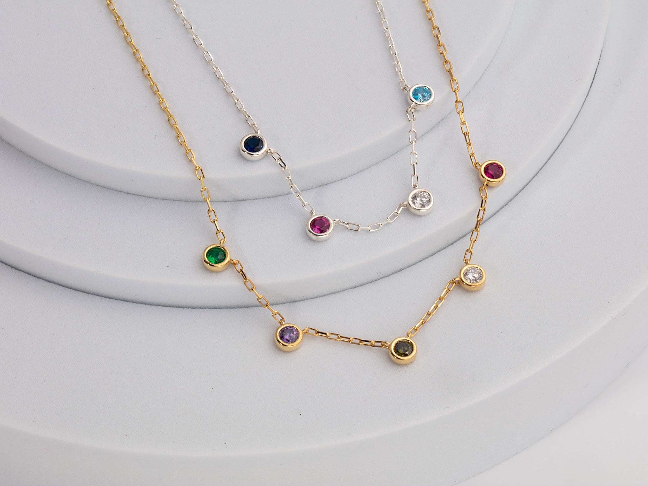 Baguette Birthstone Bar Necklace - Family Birthstone Necklace
