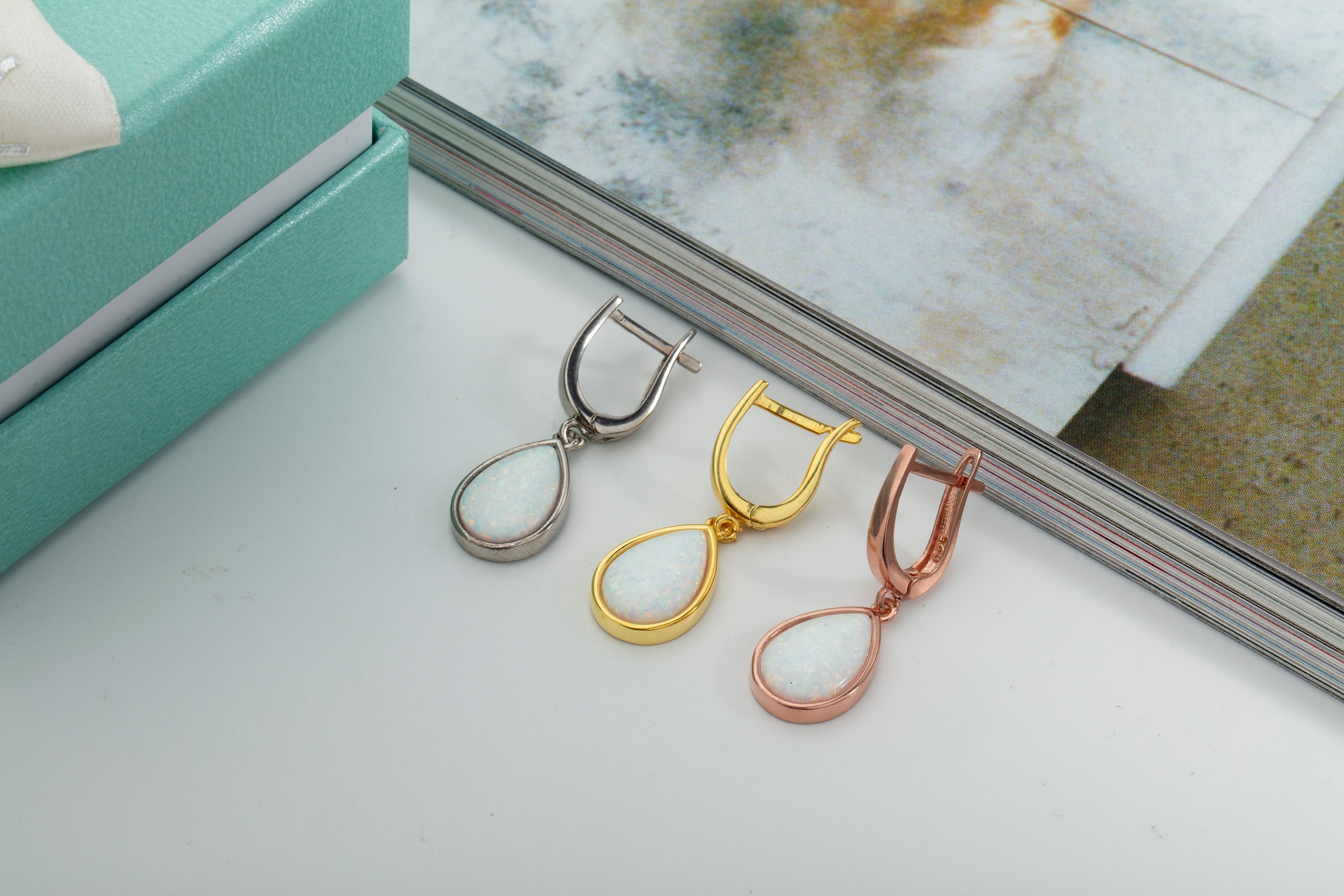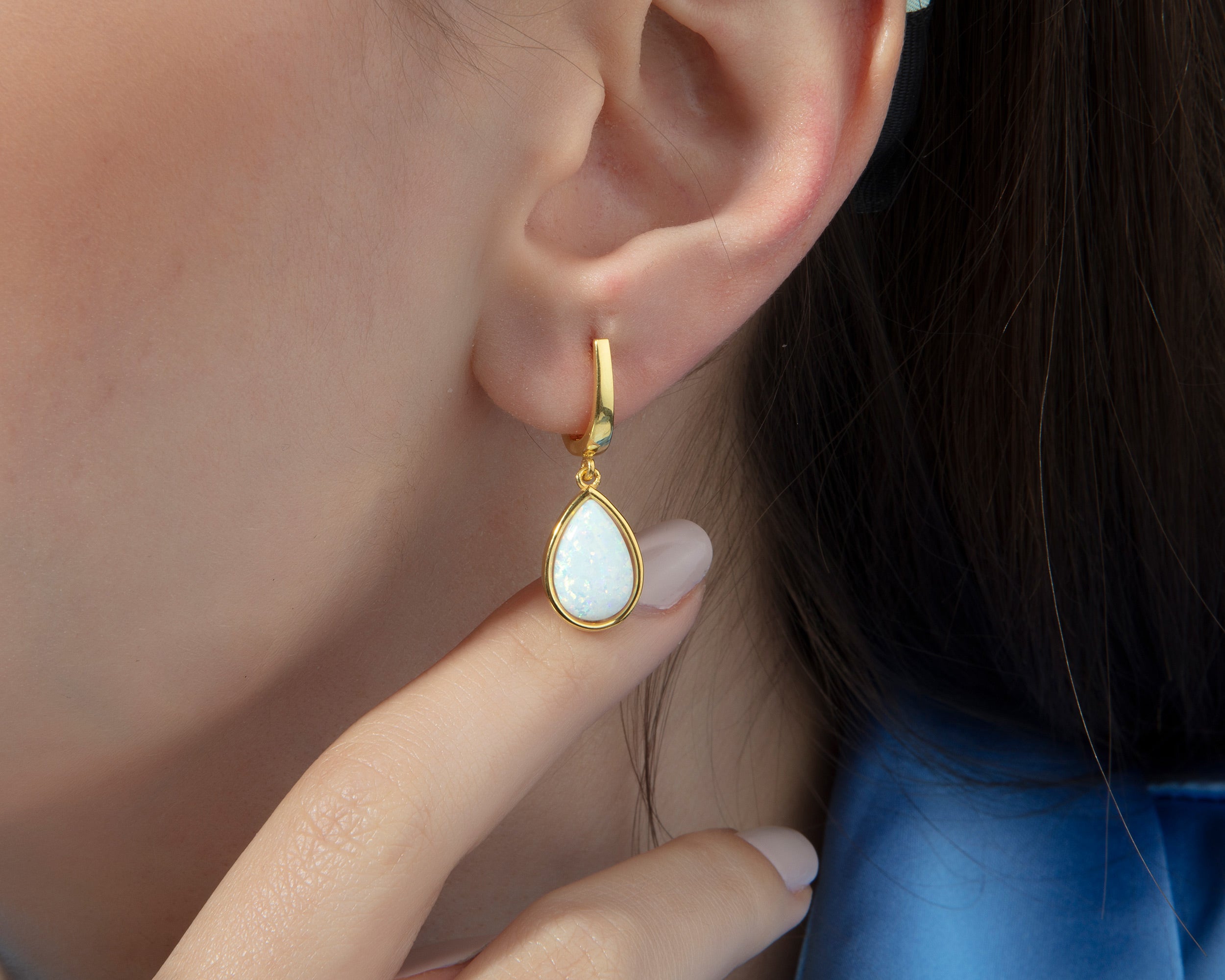 Teardrop White Opal Earrings