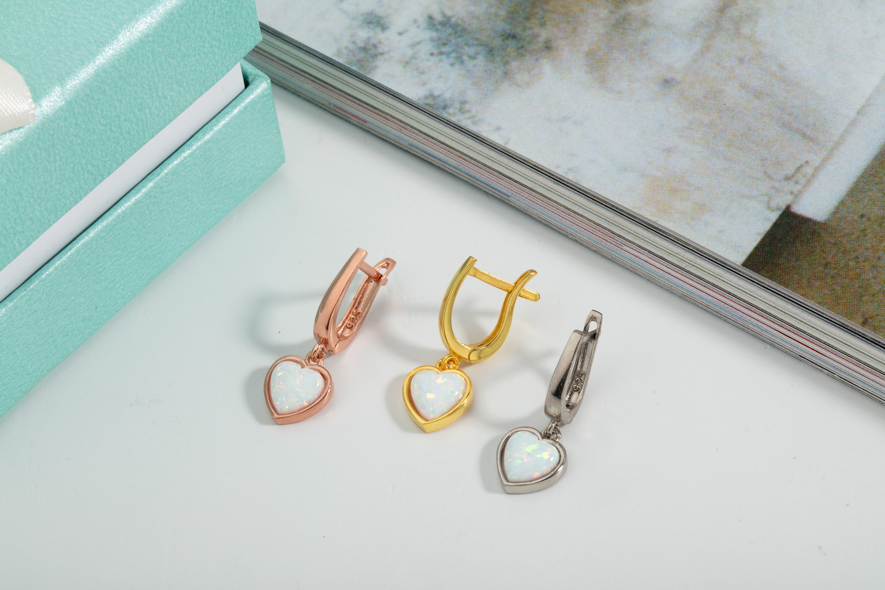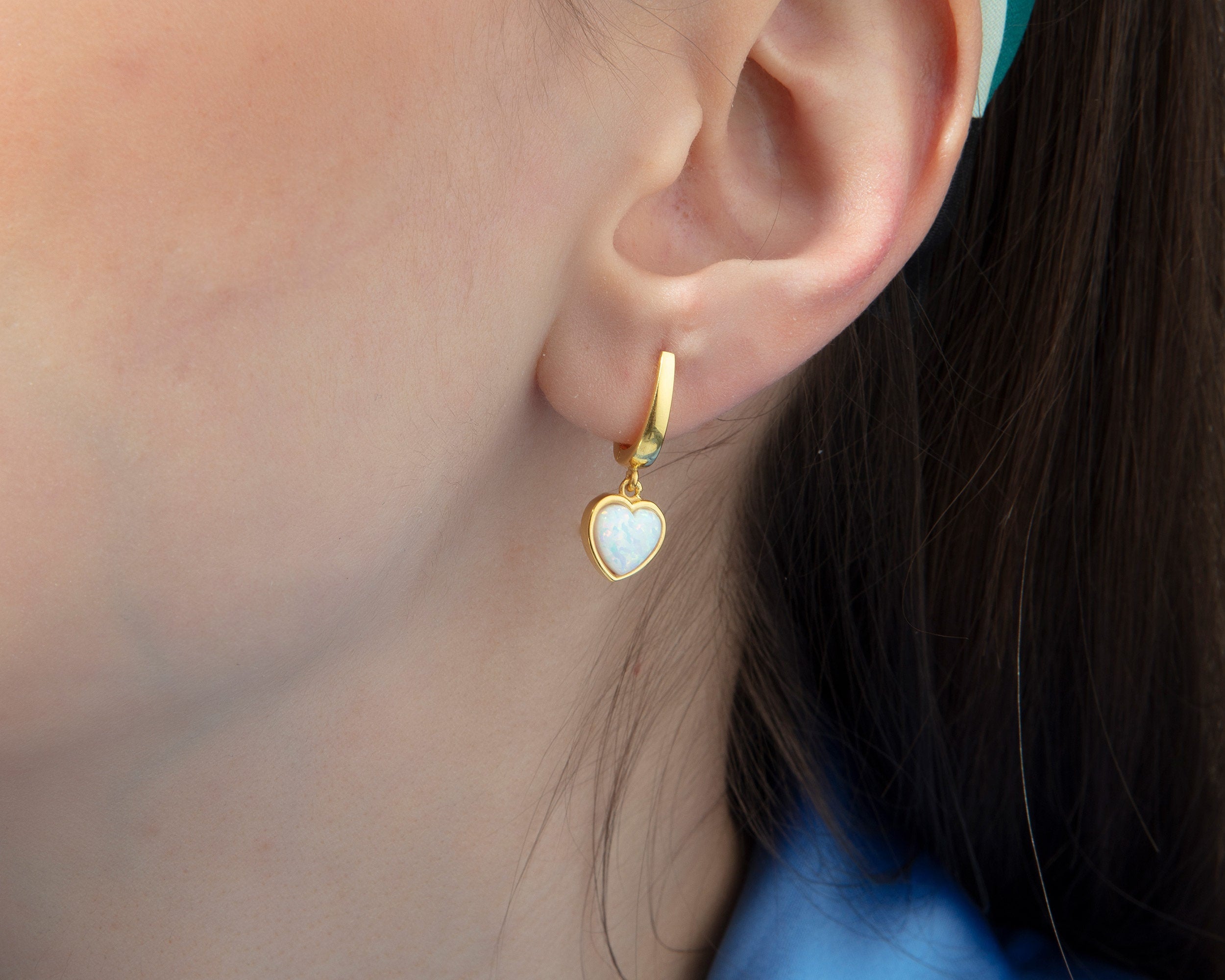 Heart Shaped White Opal Earrings