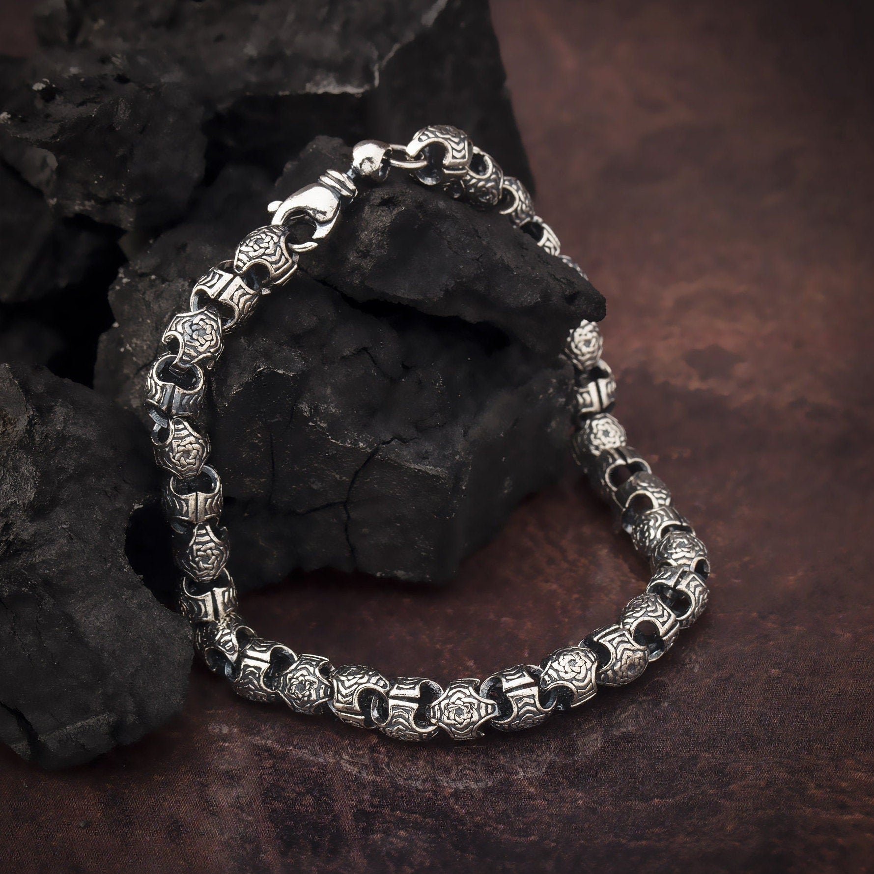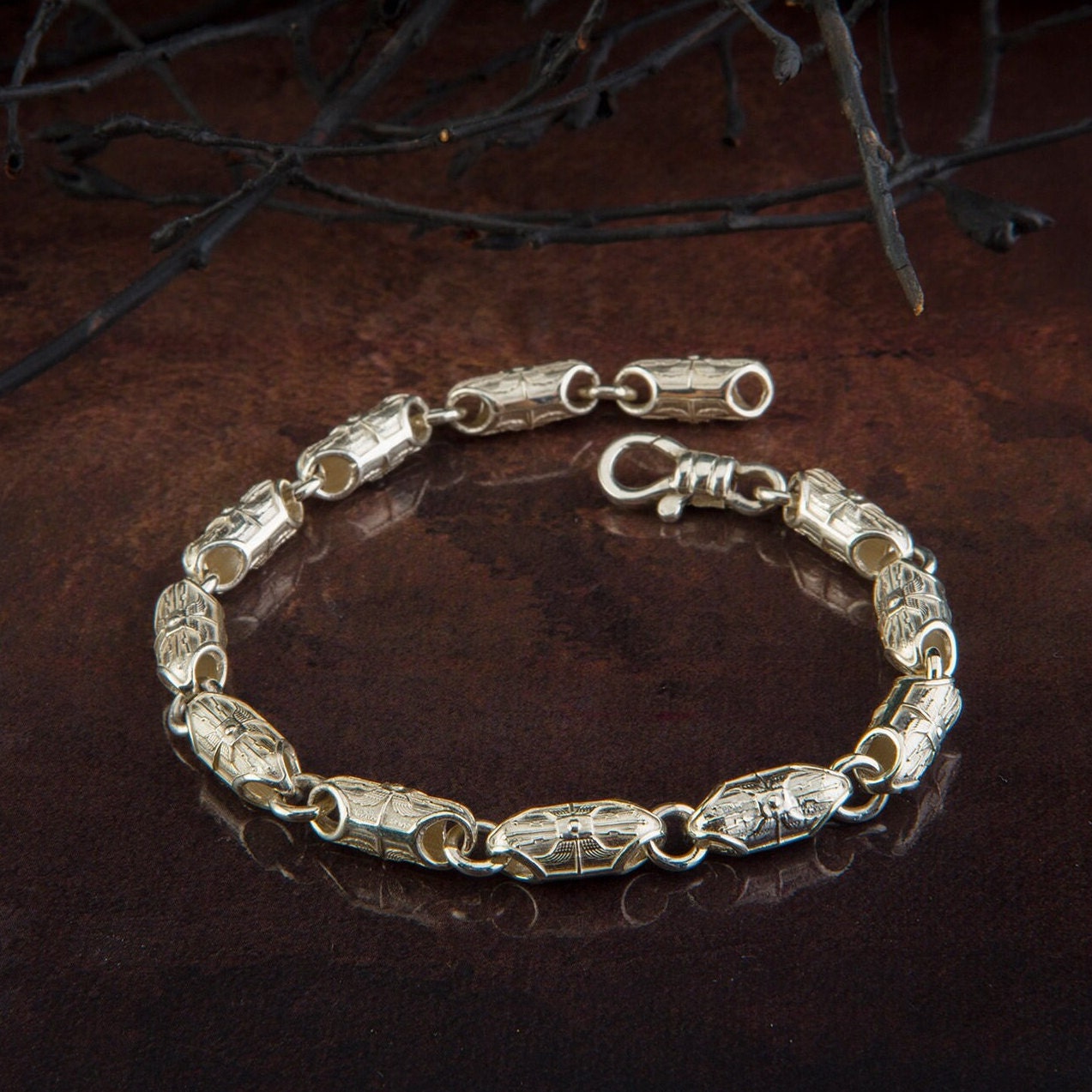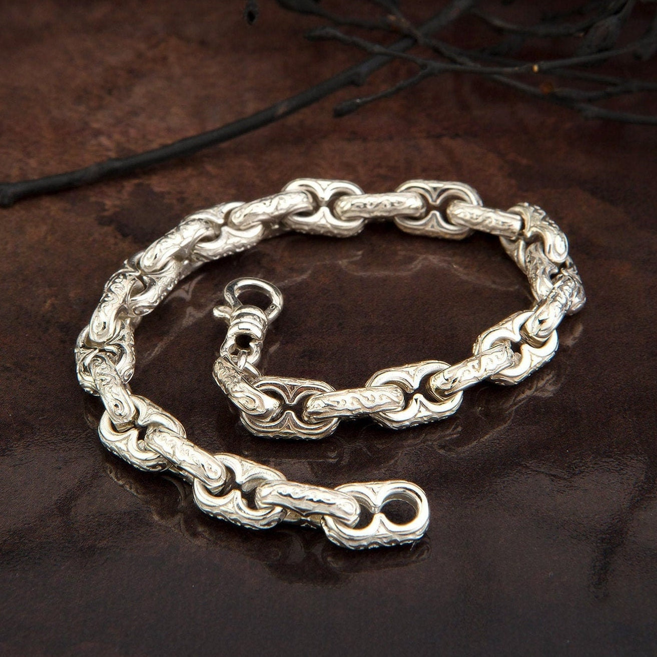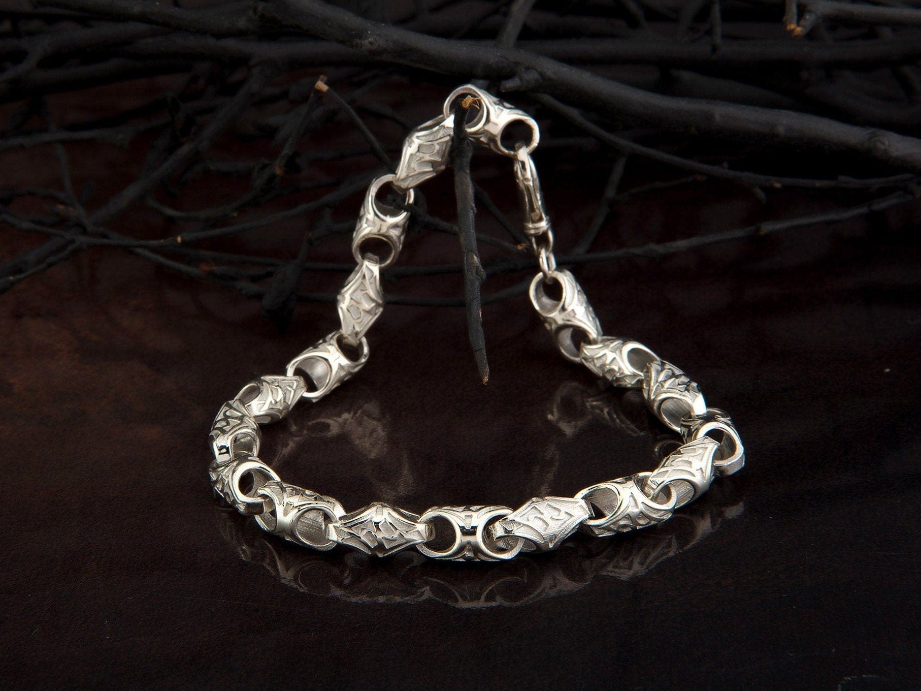 Silver Byzantine Chain, Handmade Engraved Chain Bracelets, Unique Bracelets Gift For Men, Gift For Boyfriends, Unique Gift For Father's Day