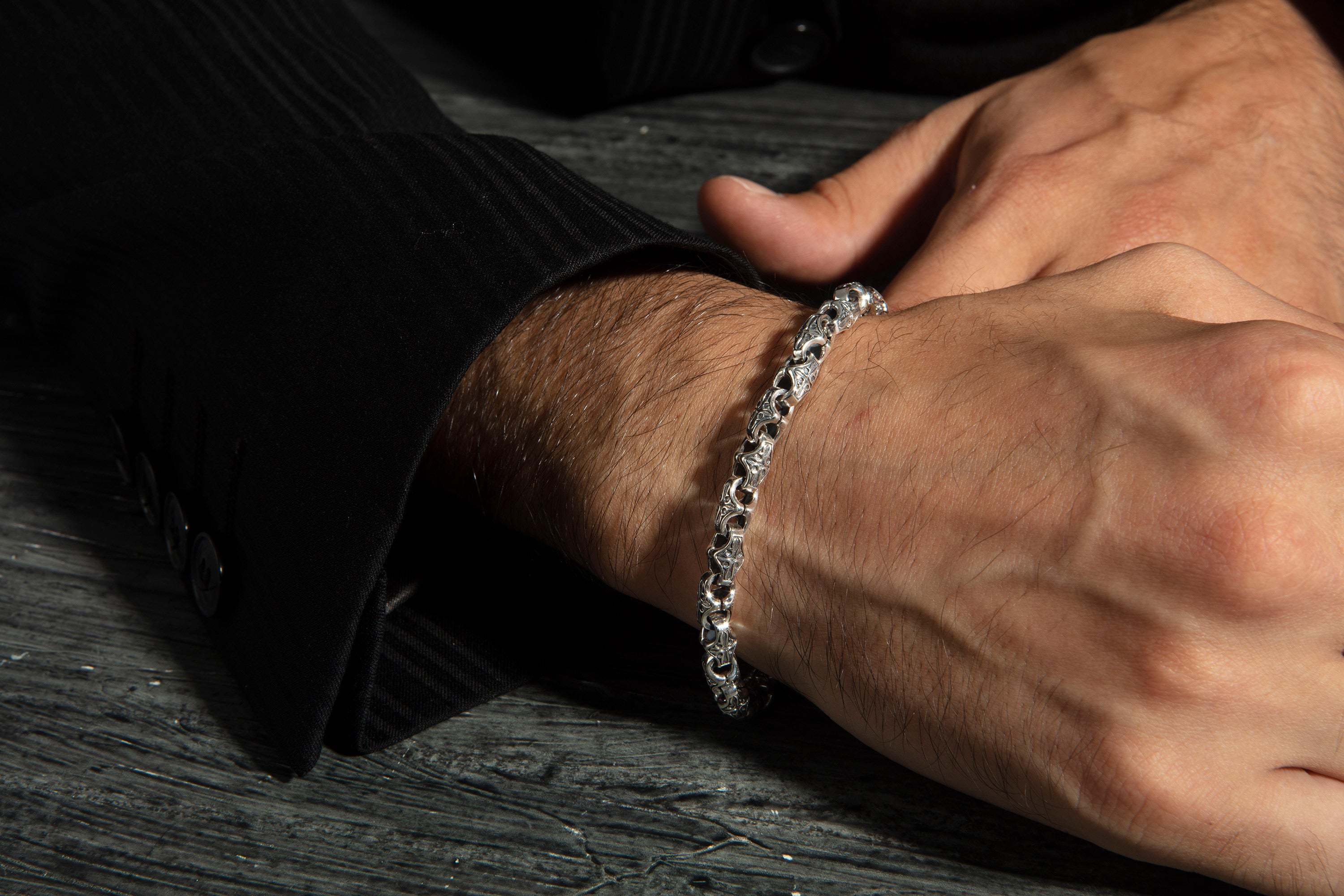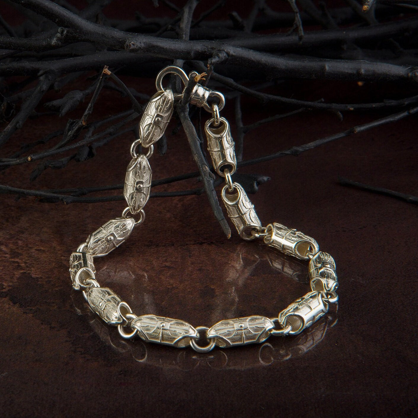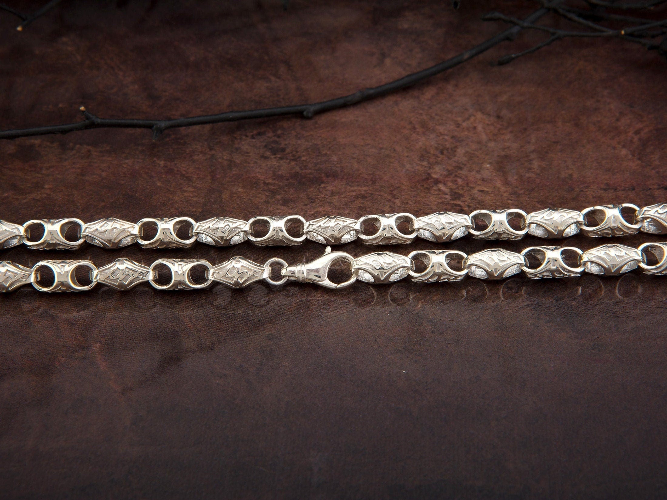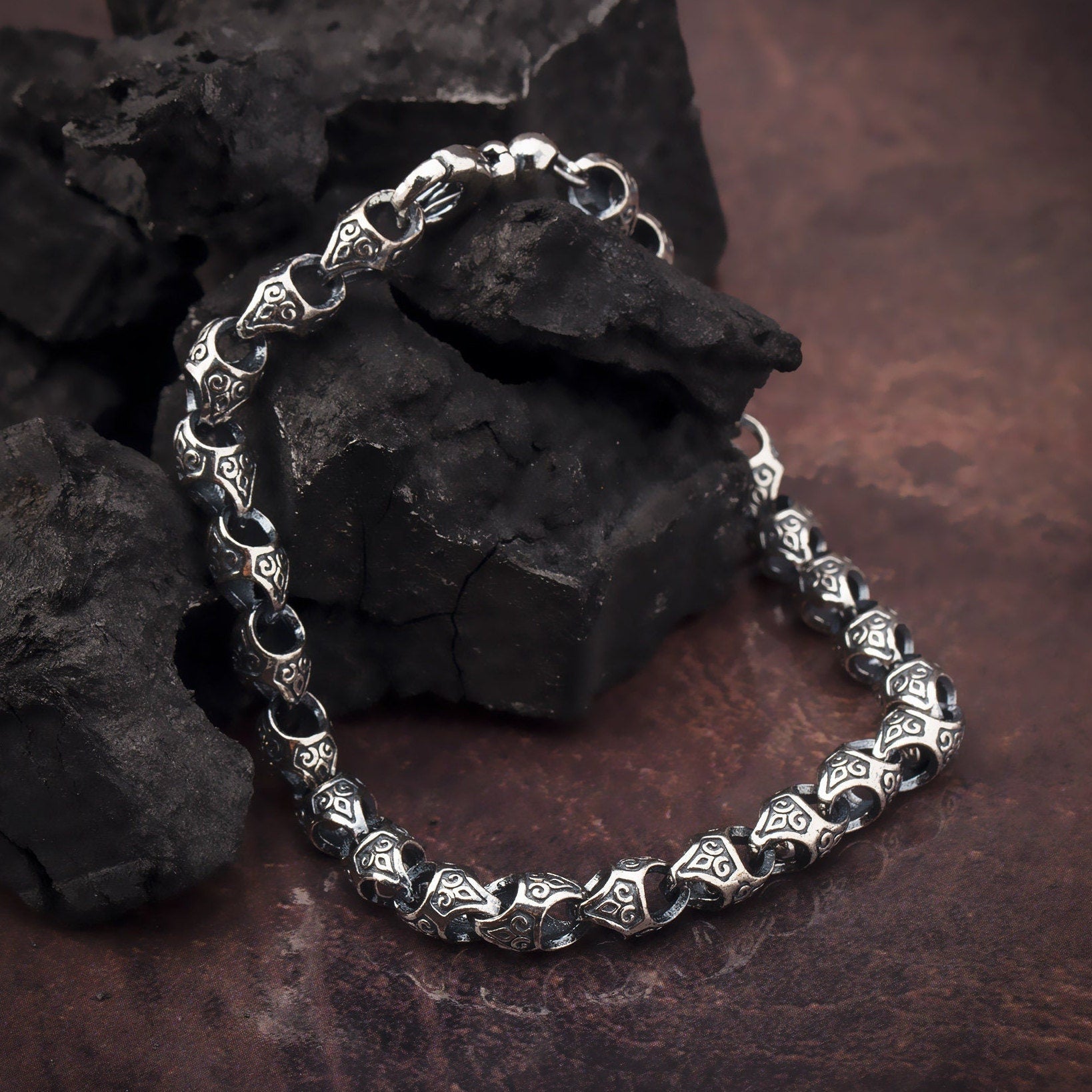 Silver Byzantine Chain, Handmade Engraved Chain Bracelets, Unique Bracelets Gift For Men, Gift For Boyfriends, Unique Gift For Father's Day