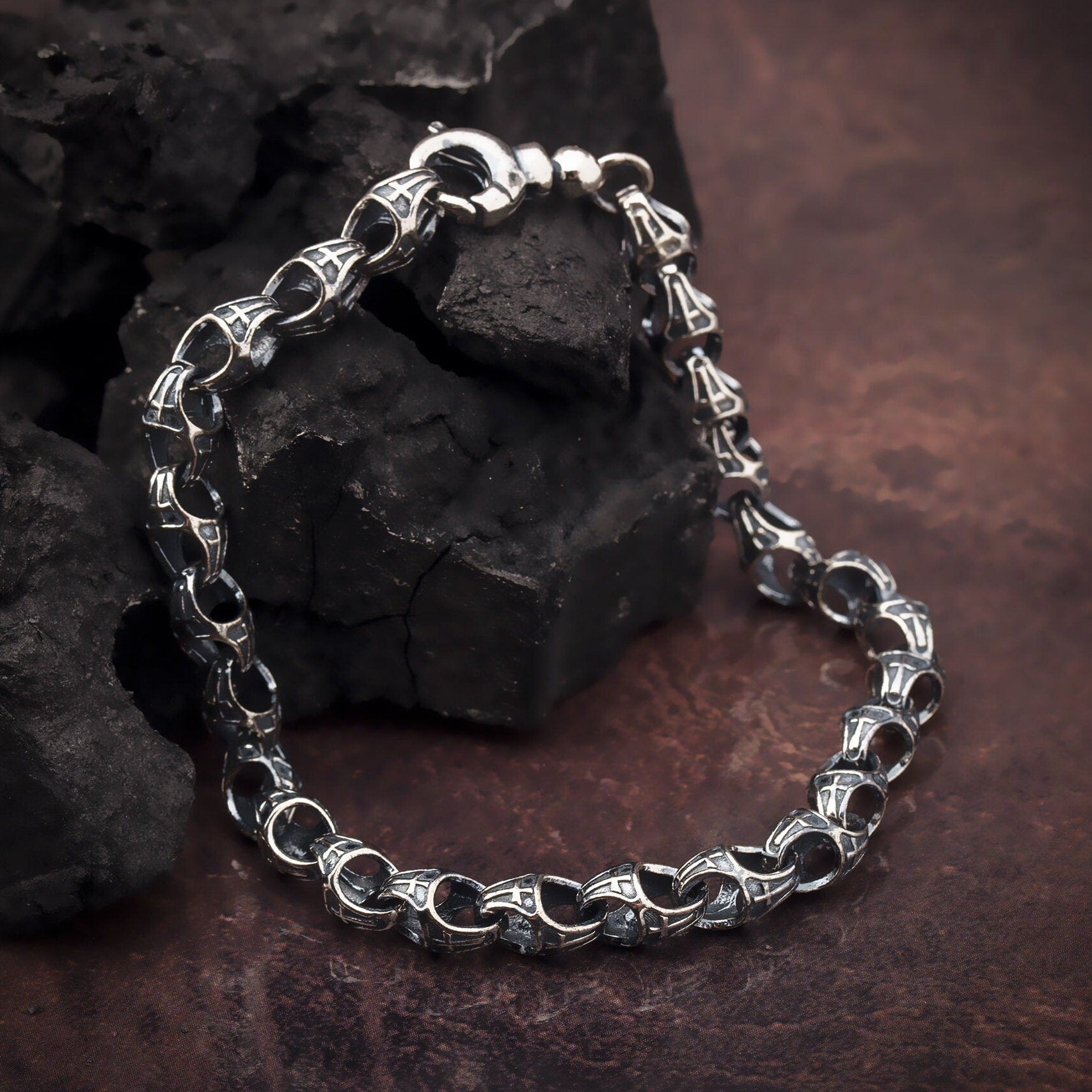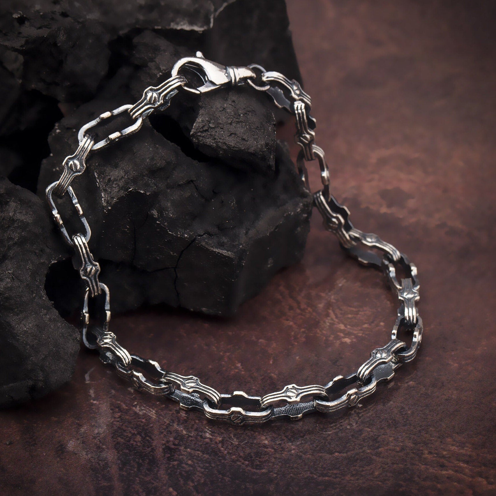 Byzantine Solid Silver Men Chain Bracelets, Oxidized Silver Chain Bracelet, Gift For Man, King Chain Bracelet, Unique Gift For Father's Day