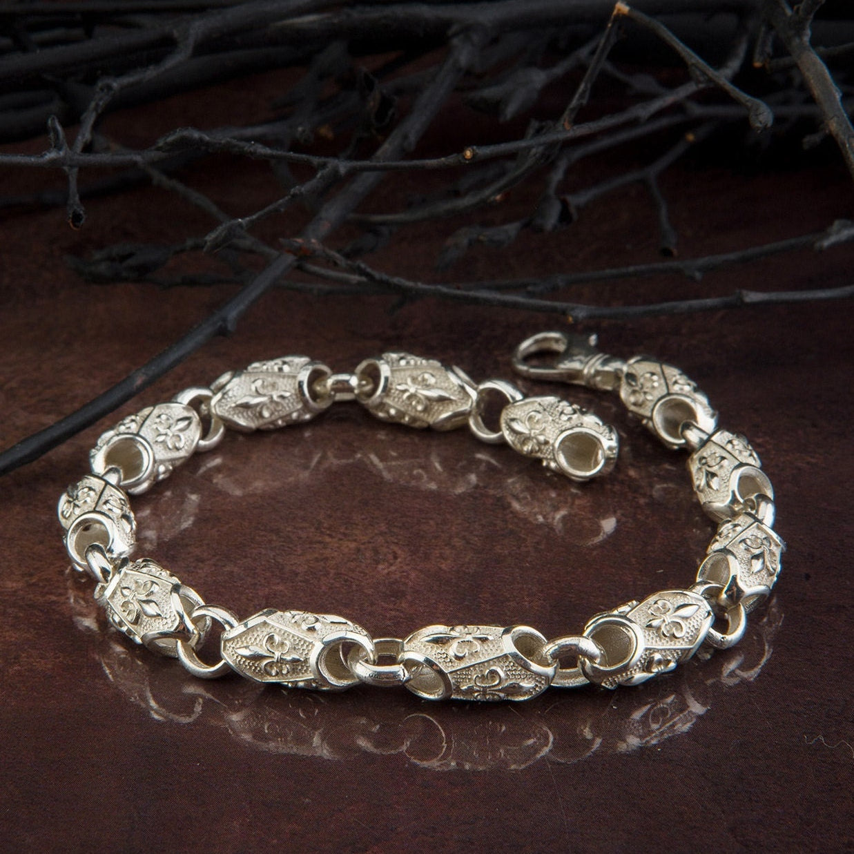Sterling Silver Chain Bracelets For Men, Byzantine Chain Bracelet, Fleur de lis Bracelet, Gift For Boyfriends, Unique Gift For Father's Day