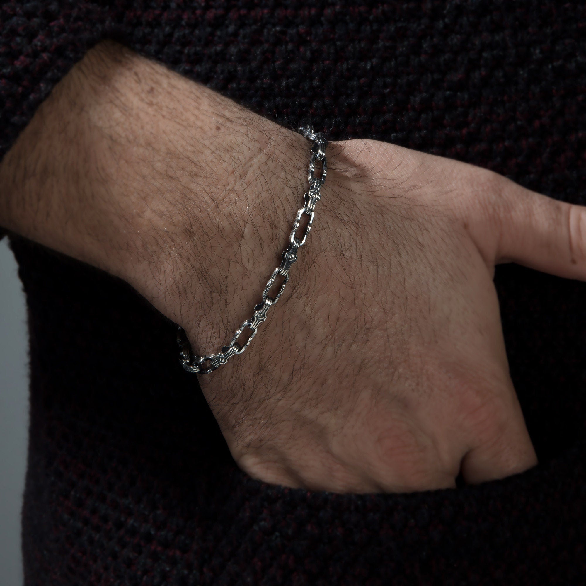 925 Solid Silver Chunky Chains, Engraved Chains, Handmade Chain Bracelets For Man, Unique Bracelet Dads Gifts, Unique Gift For Father's Day