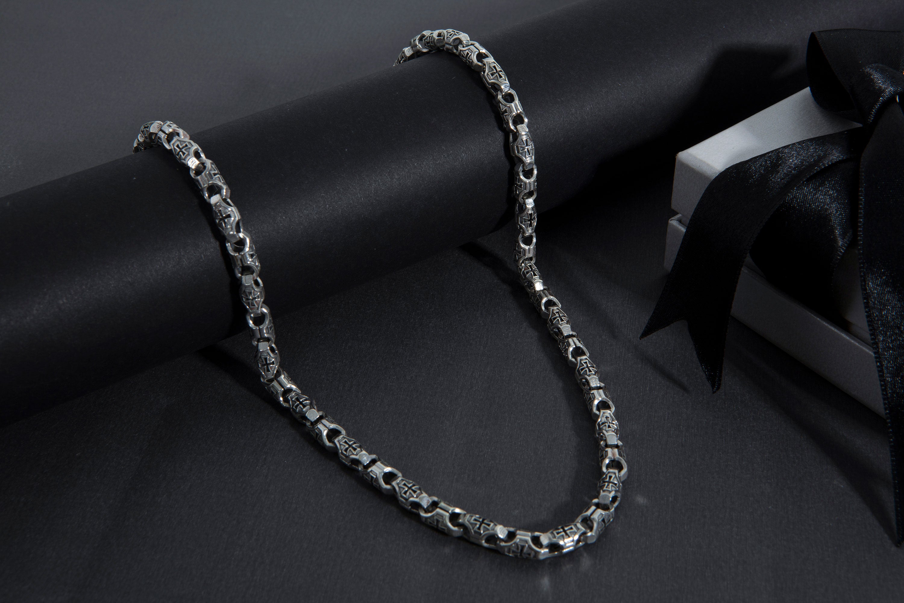 Sterling Silver Byzantine Chain Necklace, Unique Chain Necklace For Men's, Cross Patterned Man Chain Necklace, Unique Gift For Father's Day