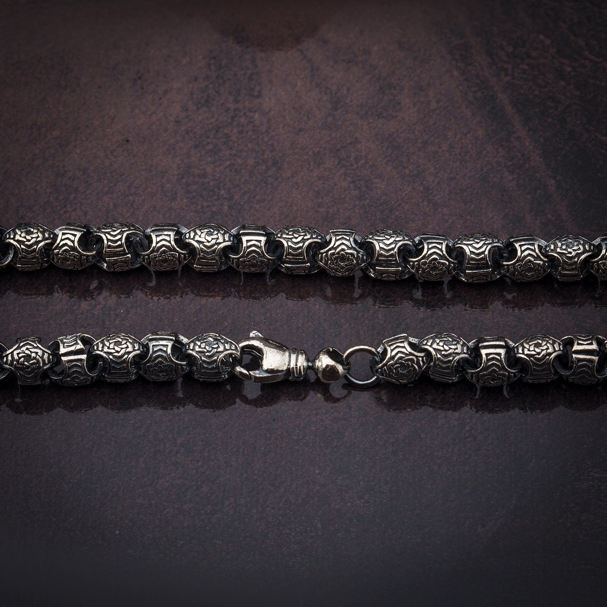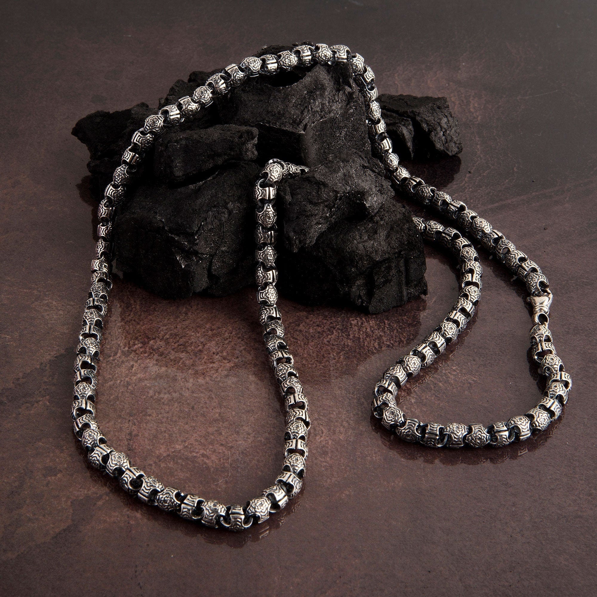 Silver Byzantine Chains, Handmade Engraved Chain Necklace, Chunky Chain Necklace For Men's, Gift For Father's, Unique Gift For Father's Day