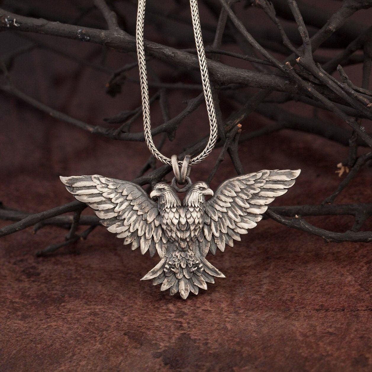 Sterling Silver Eagle Pendant, Jewelry For Man, Gift For Father's, Double Headed Eagle, Winged Eagle Necklace, Unique Gift For Father's Day