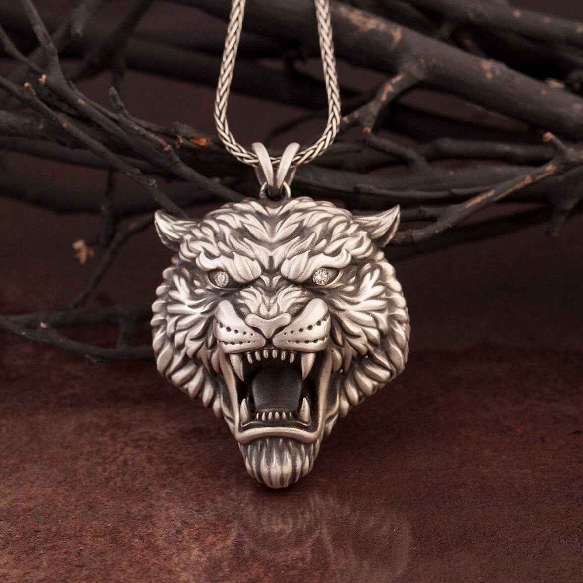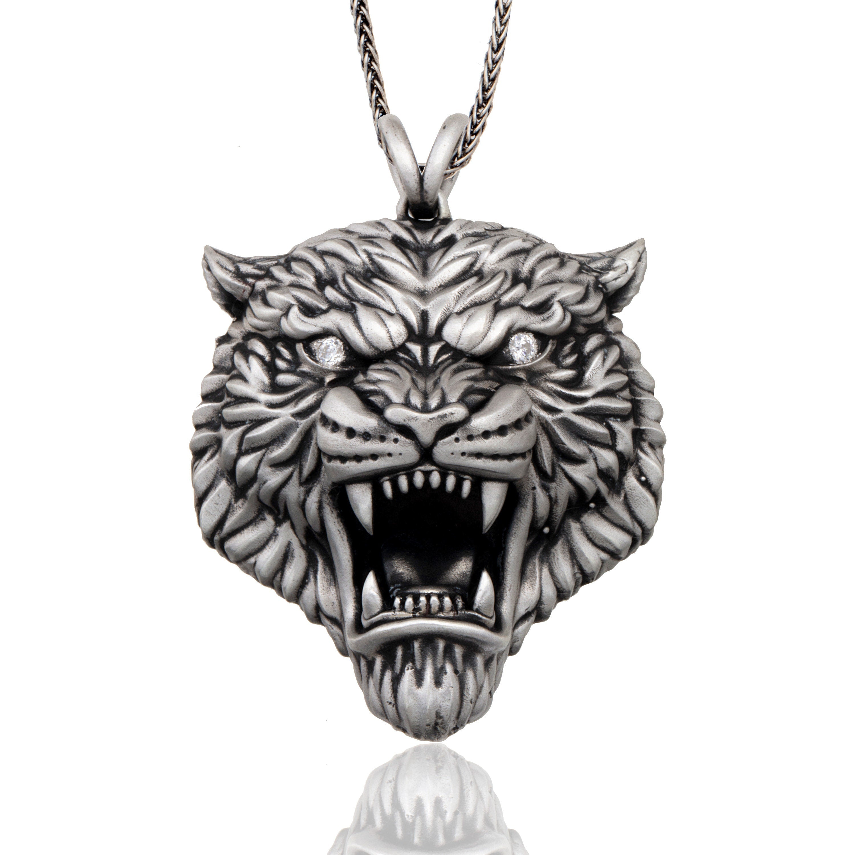 Wild Tiger Necklace, Silver Tiger Pendant, Animal Pendant, Big Cat Necklace, Gift For Men, Tiger Head Pendant, Unique Gift For Father's Day