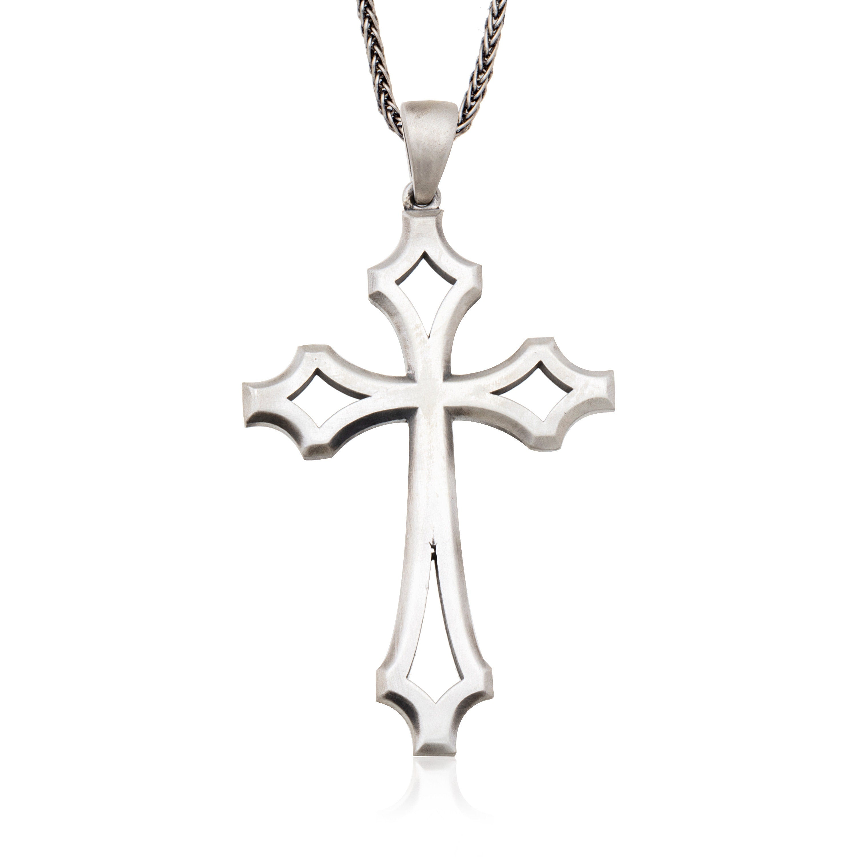 Men’s Sterling Silver Gothic Cross Necklace - Religious Jewelry