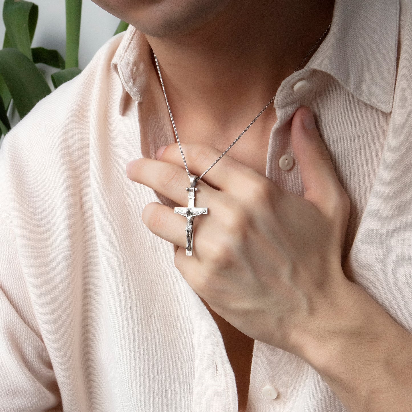 Carry a symbol of faith and strength close to your heart with this handcrafted crucifix pendant, made from solid 925 sterling silver. Featuring a detailed depiction of Jesus on the cross, this timeless design is finished with subtle oxidized accents to enhance every contour and line.