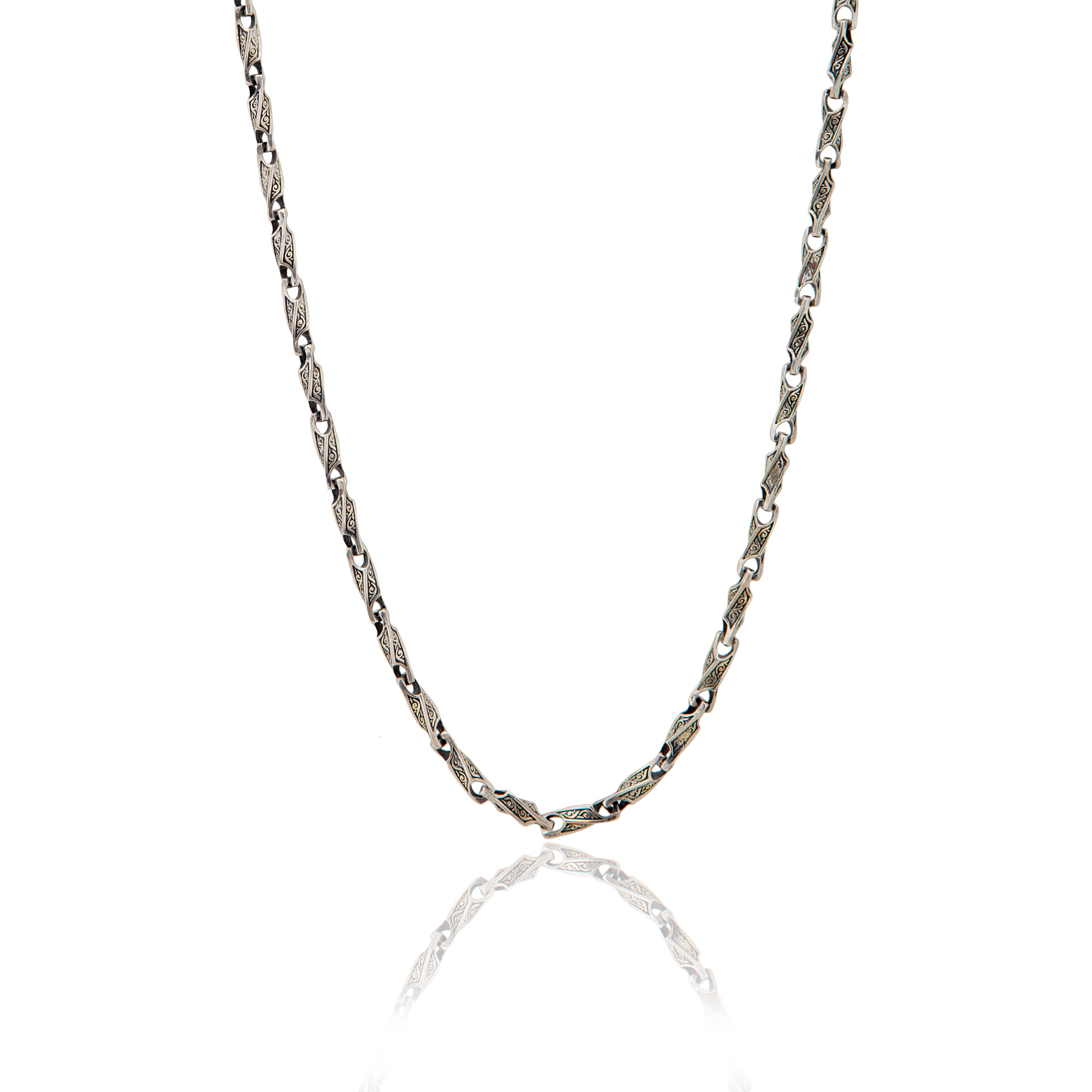 Sterling Silver Handmade Engraved Chain Necklace, Men's Byzantine Chains, Gift For Him, Best Gift For Fathers, Unique Gift For Father's Day