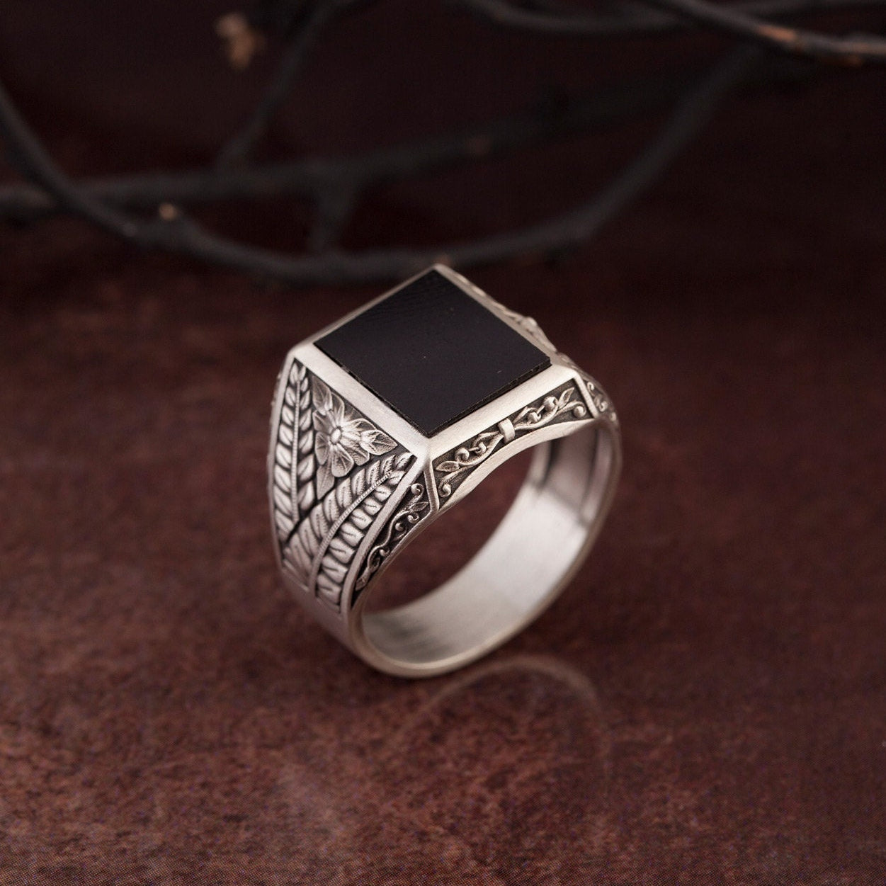 Rectangle Onyx Men Ring, Black Onyx Silver Ring, Wedding Engagement Men Rings, Gift For Men, Signet Man Rings, Unique Gift For Father's Day