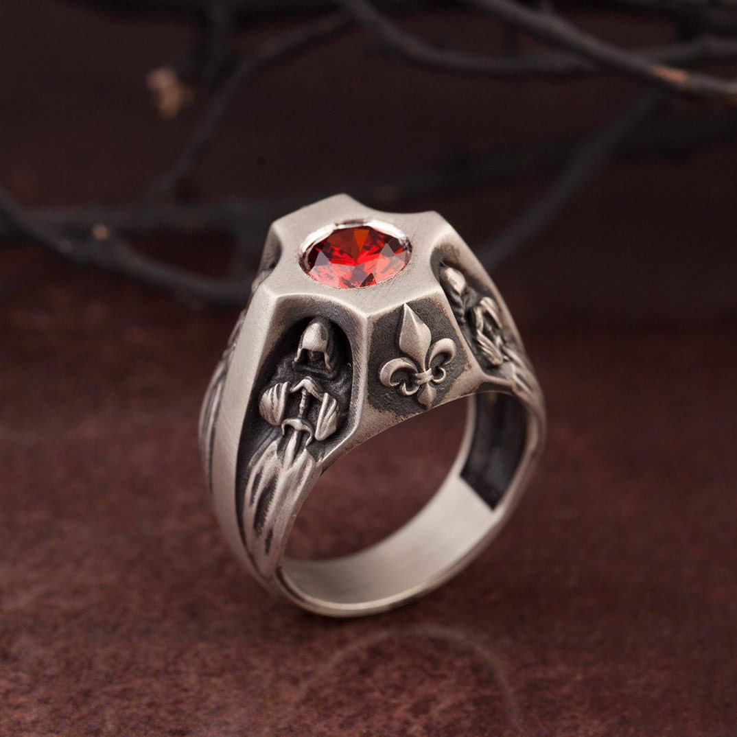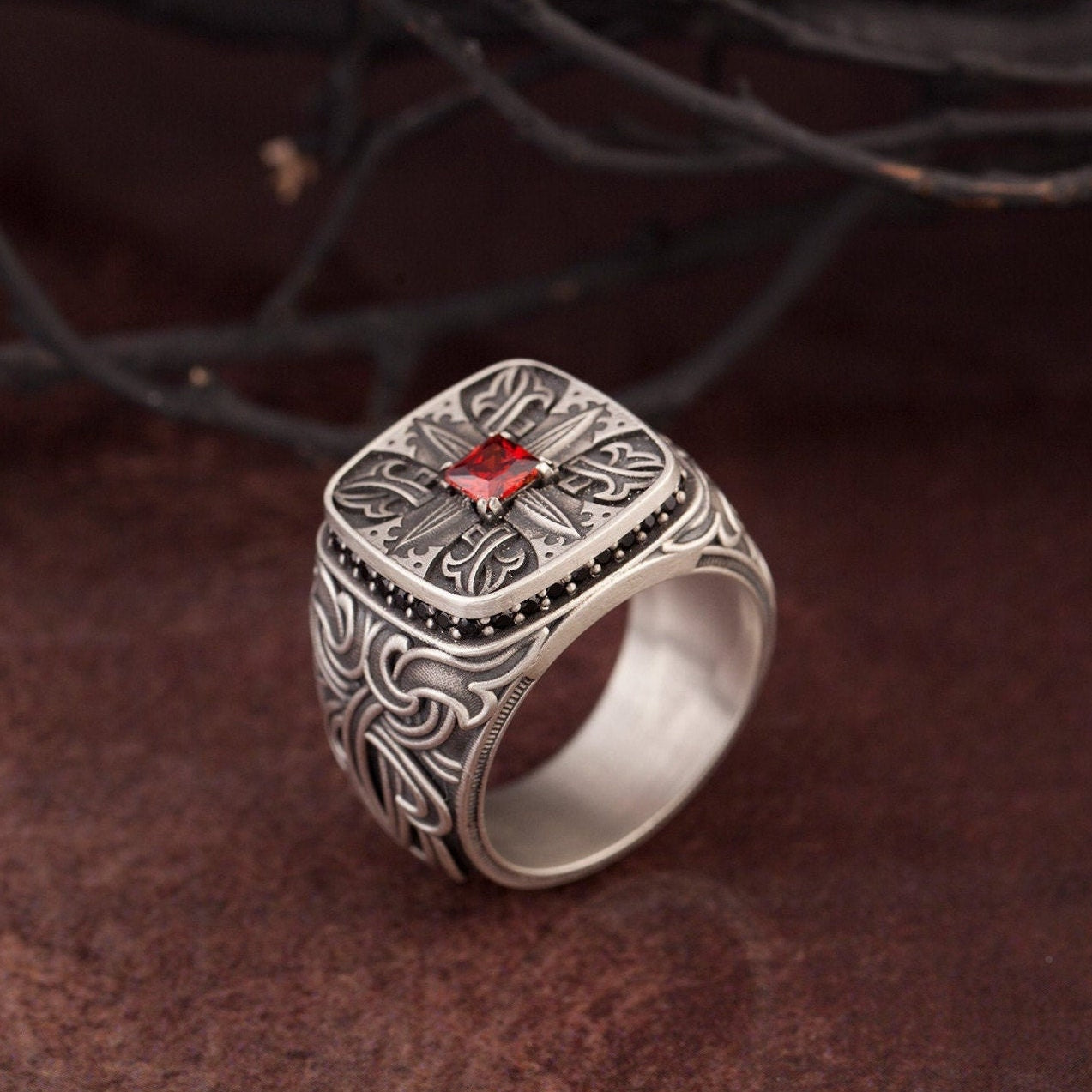Templar Knight Silver Ring, Signet Rings, Christian Rings, Crusader Knight, Religious Ring, Gemstone Men Ring, Unique Gift For Father's Day