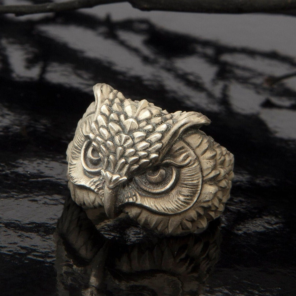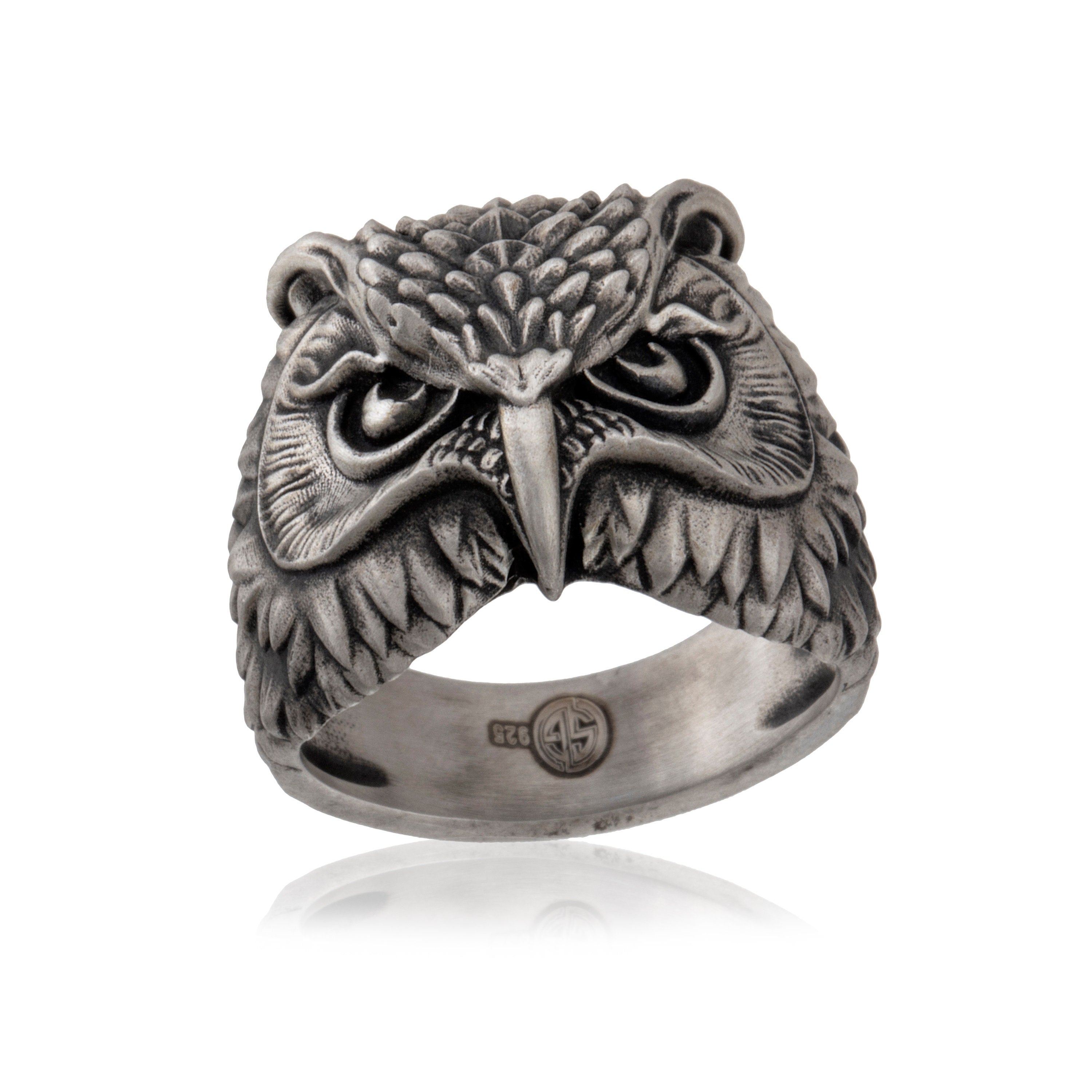 Silver Owl Rings, Handmade Owl Rings, Unisex Statement Rings, Oxidized Animal Signet Rings, Gift For Fathers, Unique Gift For Father's Day