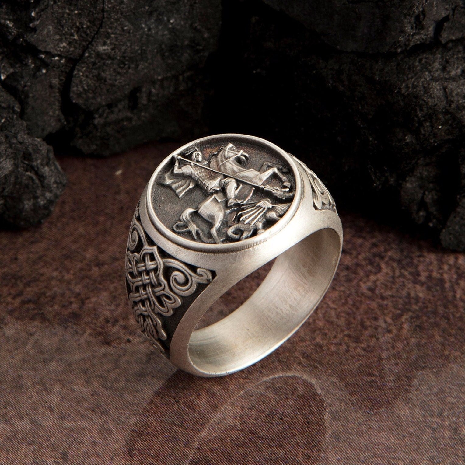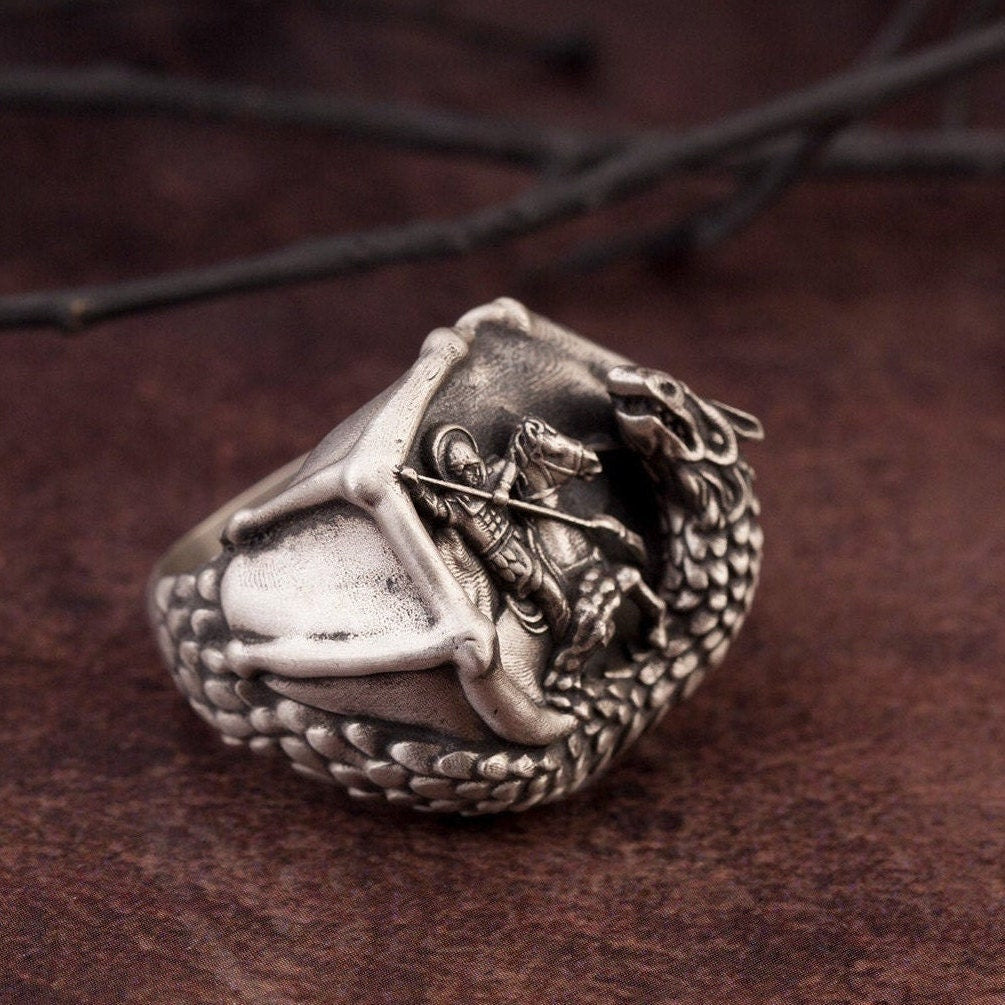 Sterling Silver Saint George Rings, Religious Jewelry For Men, St George Protect Us, Christian Statement Ring, Unique Gift For Father's Day