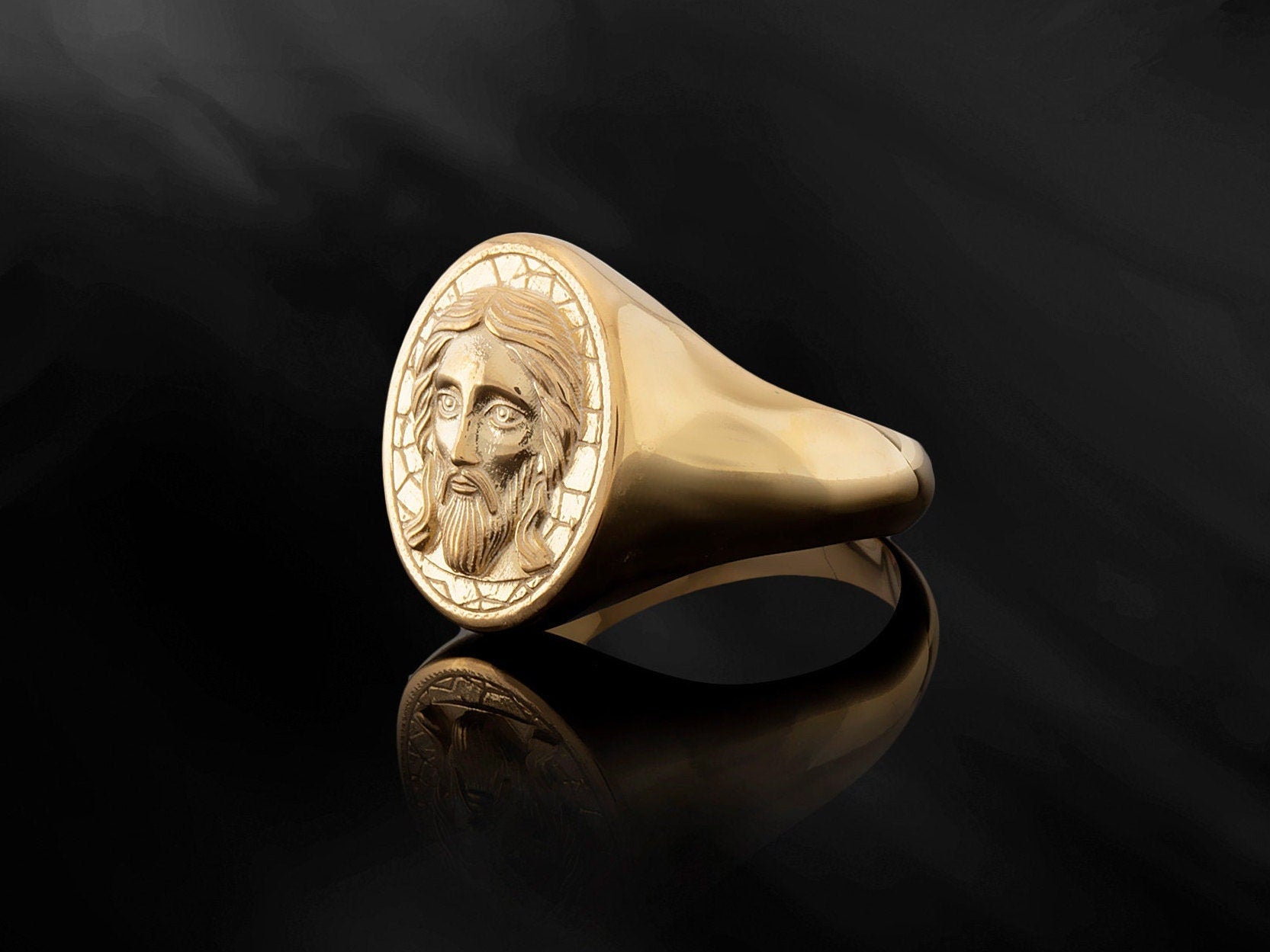 14K Solid Gold Christ Jesus Man Ring, 10K Jesus Statement Rings for Men, Gifts For Men, 18K Religious Rings, Unique Gift For Father's Day