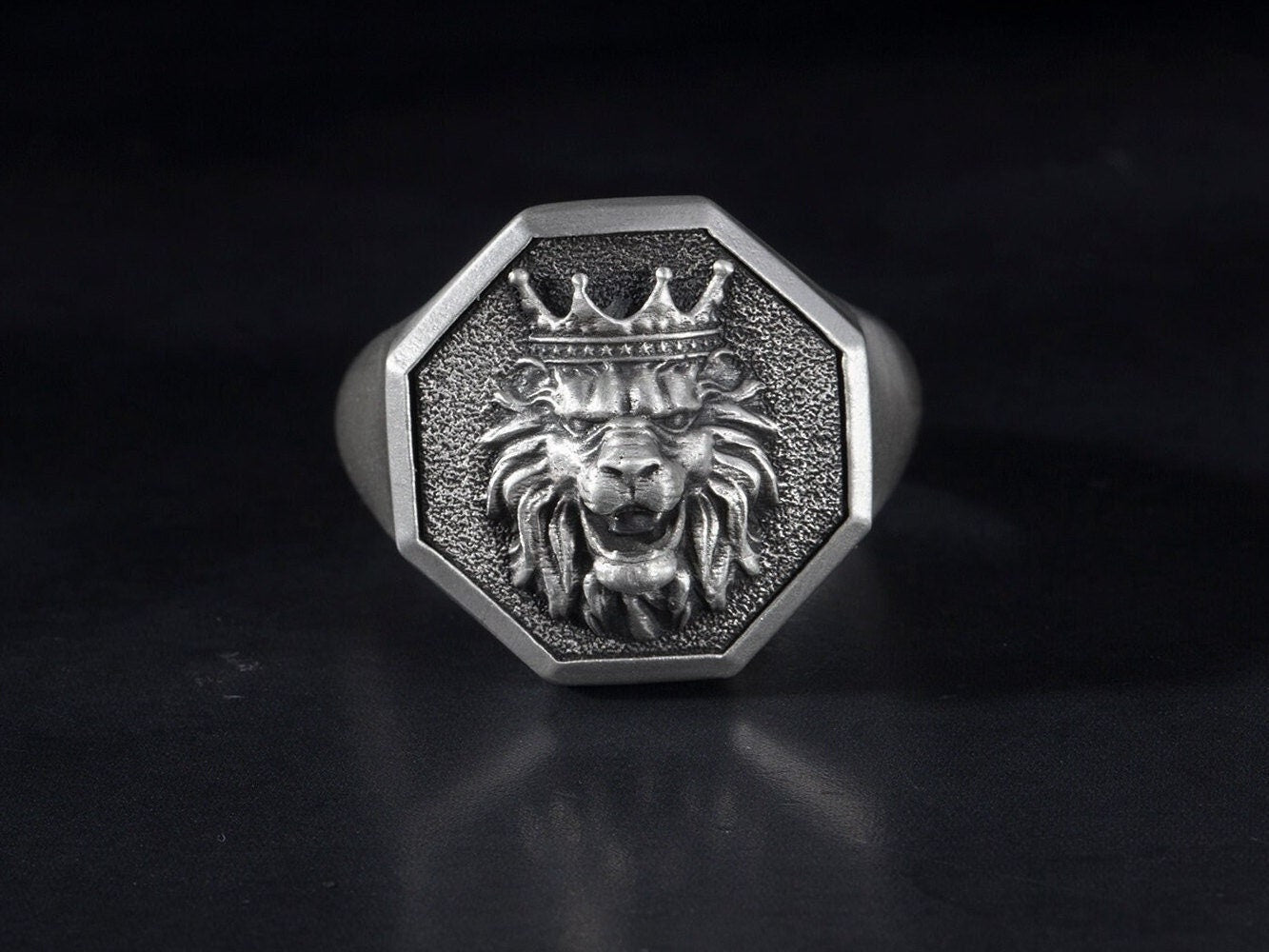 Handmade Silver Lion Statement Ring, Signet Lion Ring For Men, Gift For Fathers, Mens Jewelry, Lion Head Ring, Unique Gift For Father's Day