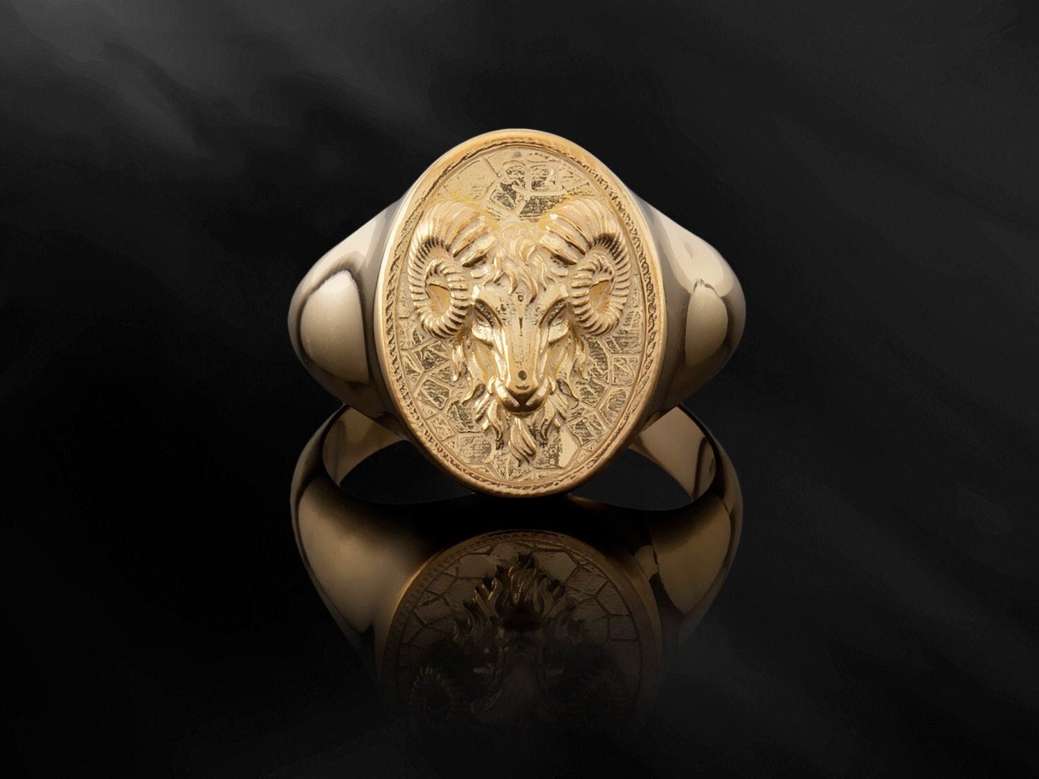 14K Gold Ram Ring For Men, Men's Gold Statement Rings, 18K Solid Gold Ram Zodiac Ring, Animal Jewelry For Men, Unique Gift For Father's Day