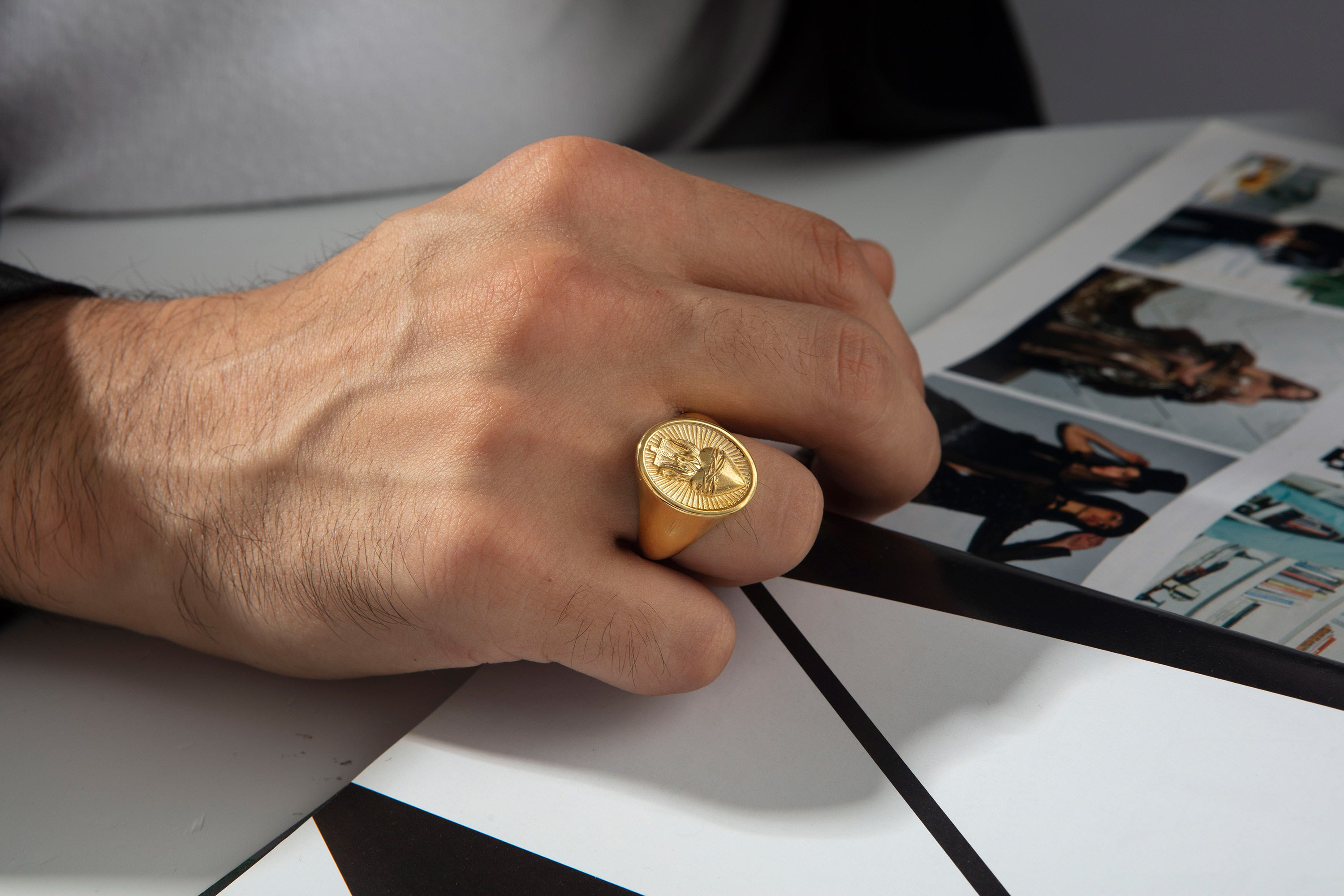 This Solid Gold Ring features engraving details that are polished, modern and stylish.