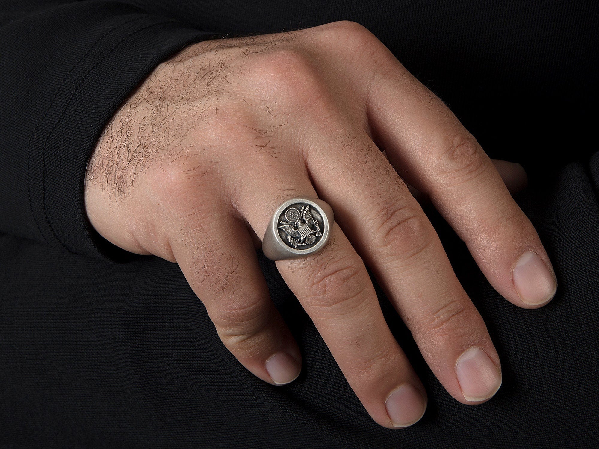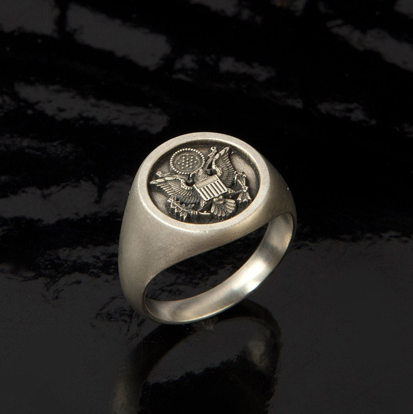 American Flag Ring, Silver Signet Man Rings, Ring For Patriots, Gift For Veterans, Silver Statement Men Rings, Unique Gift For Father's Day