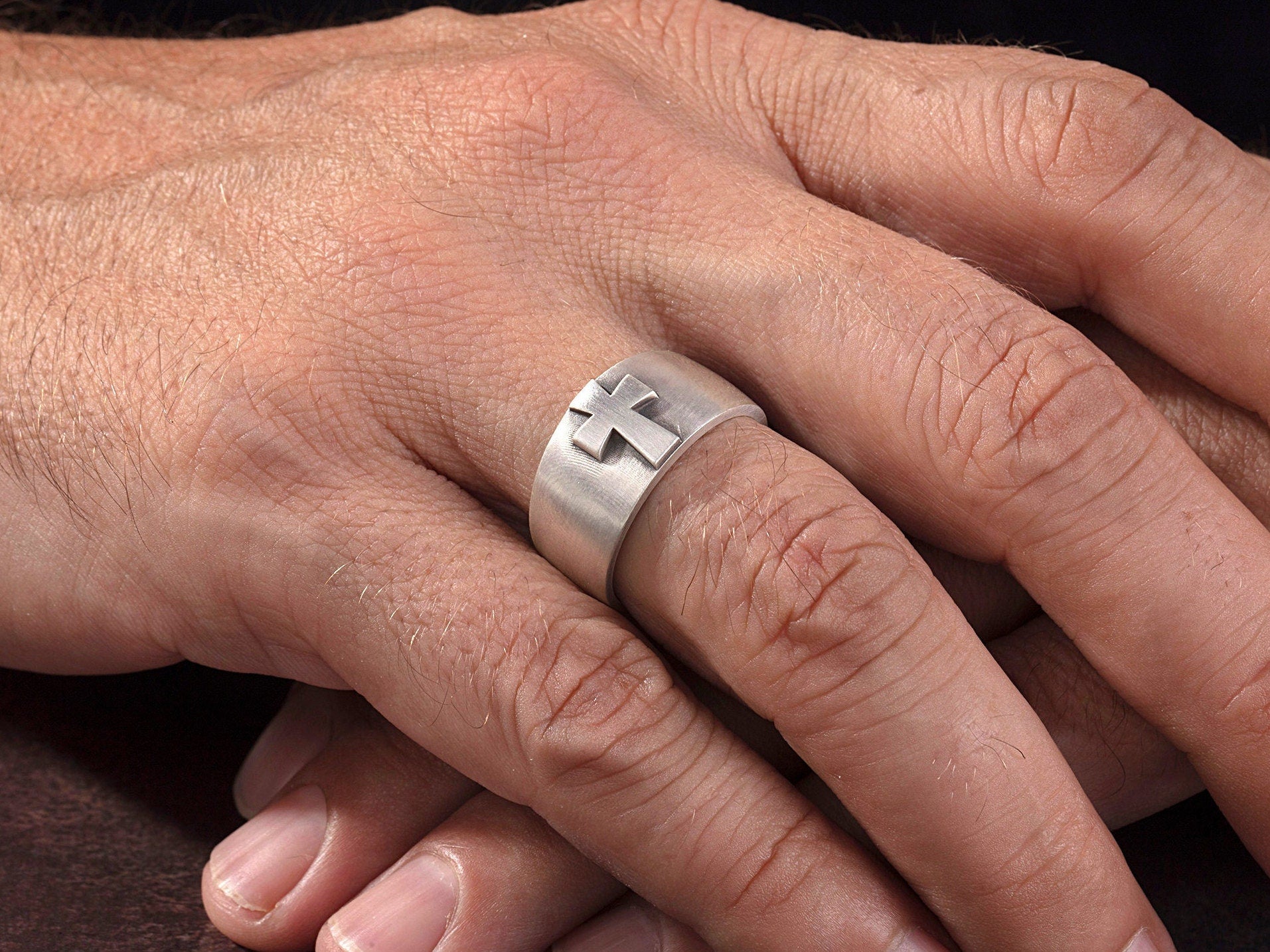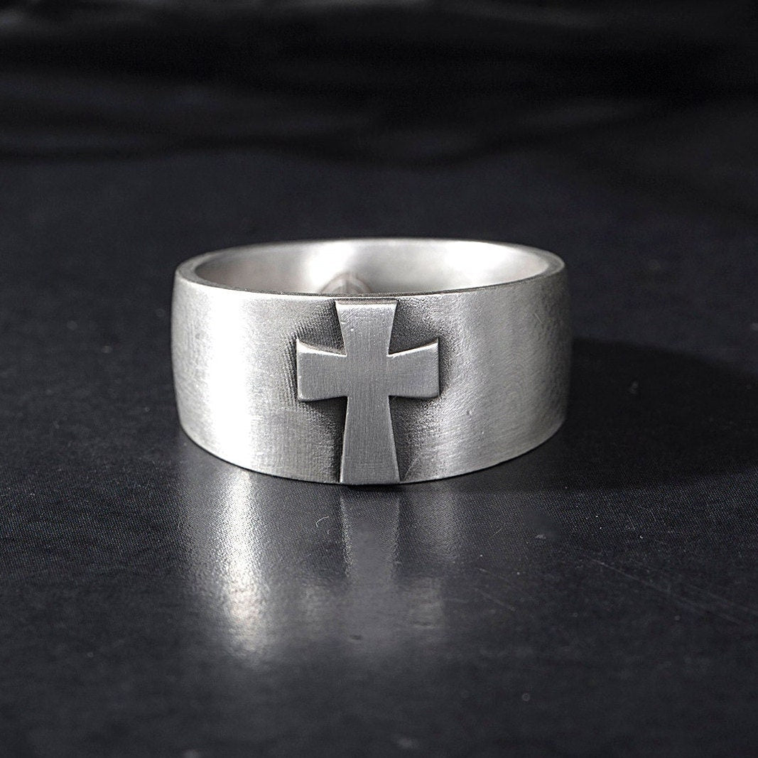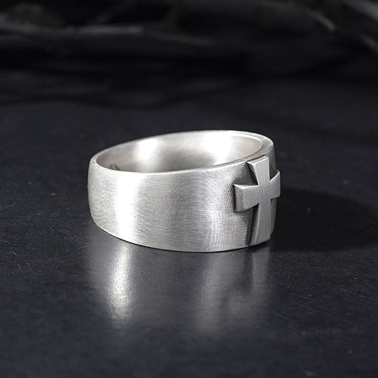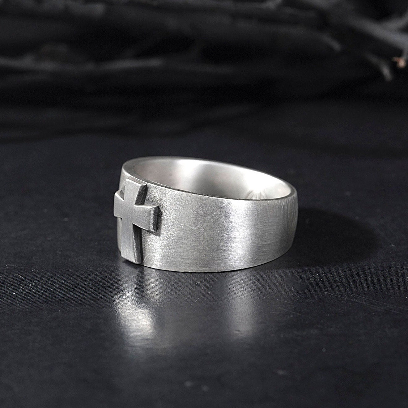 Silver Cross Rings For Men, Crucifix Statement Rings, Wedding Man Band, Religious Jewelry For Men, Fathers Gift,