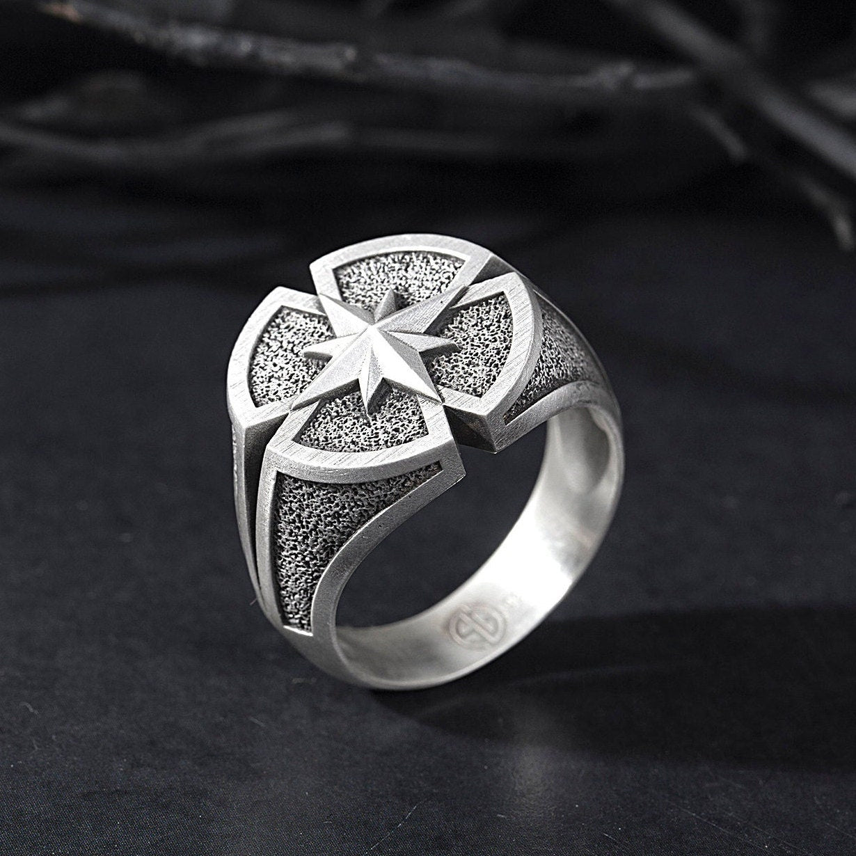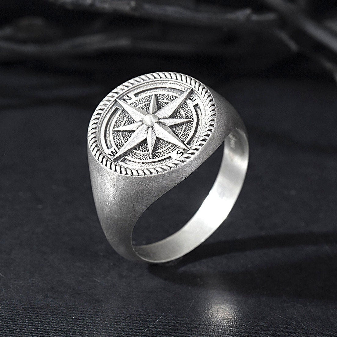 Sterling Silver North Star Rings, Nautical Compass Ring, Gift for Fathers, Fisherman Rings, Compass Rose Ring, Unique Gift For Father's Day
