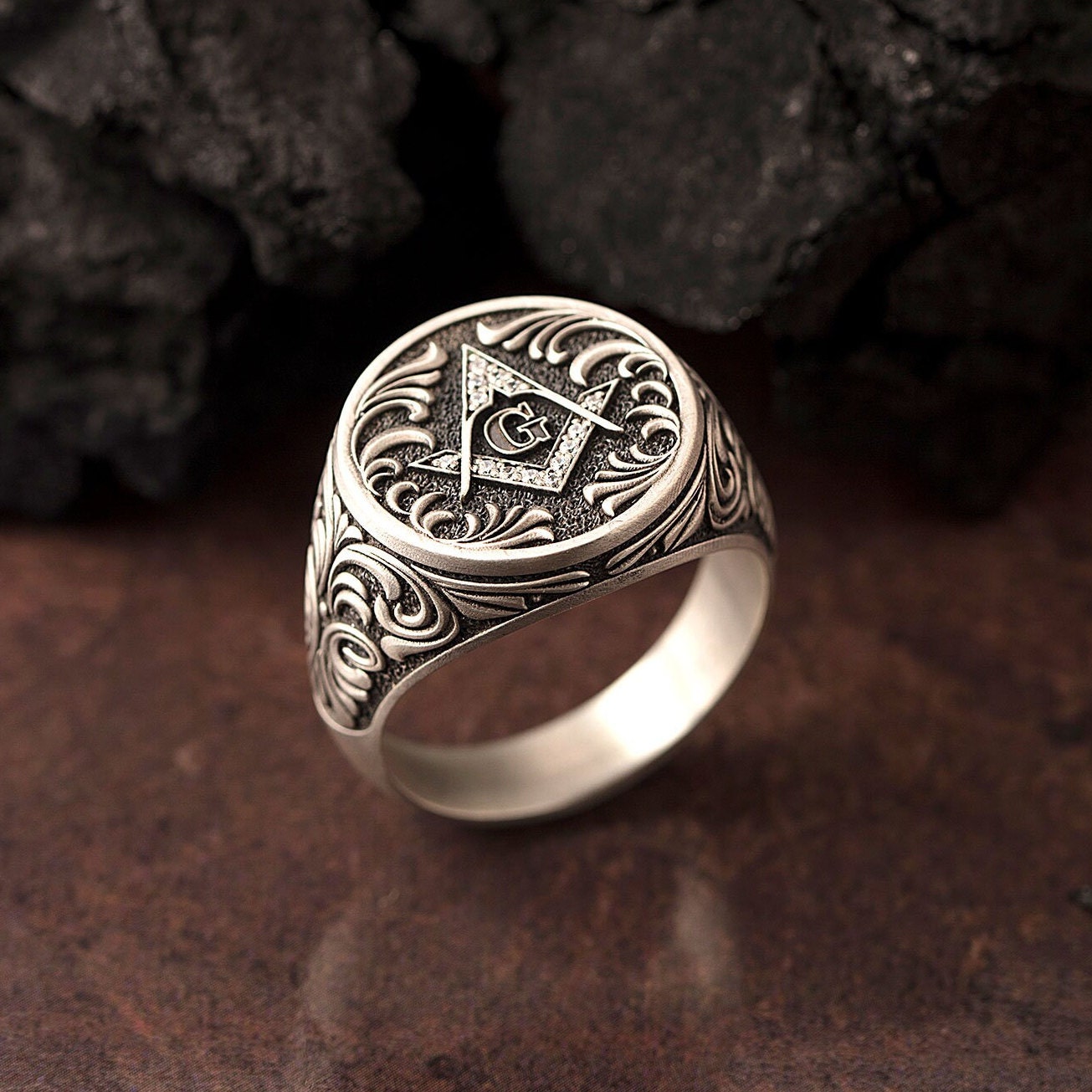 Sterling Silver Masonic Rings, Freemason G Class Rings, Master Mason Compass Rings, Best Gifts For Masonic Men, Unique Gift For Father's Day