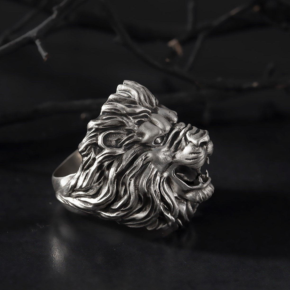 Silver Lion Rings, African Wild Lion Ring, Statement Rings For Men, Oxidized Animal Rings, Gift For Boyfriend, Unique Gift For Father's Day