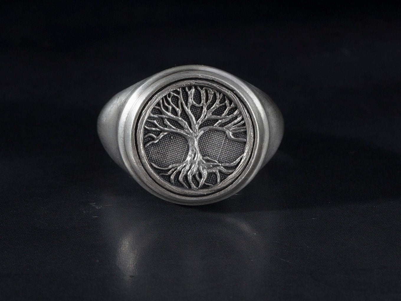 Sterling Silver Family Tree Ring, Tree Of Life Signet Rings, Boho Viking Men Rings, Scandinavian Men Jewelry, Unique Gift For Father's Day