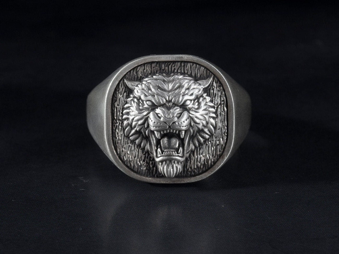 Handmade Silver Tiger Ring, Wild Tiger Ring, Men's Animal Statement Ring, Men's Signet Ring, Gift for Fathers, Unique Gift For Father's Day