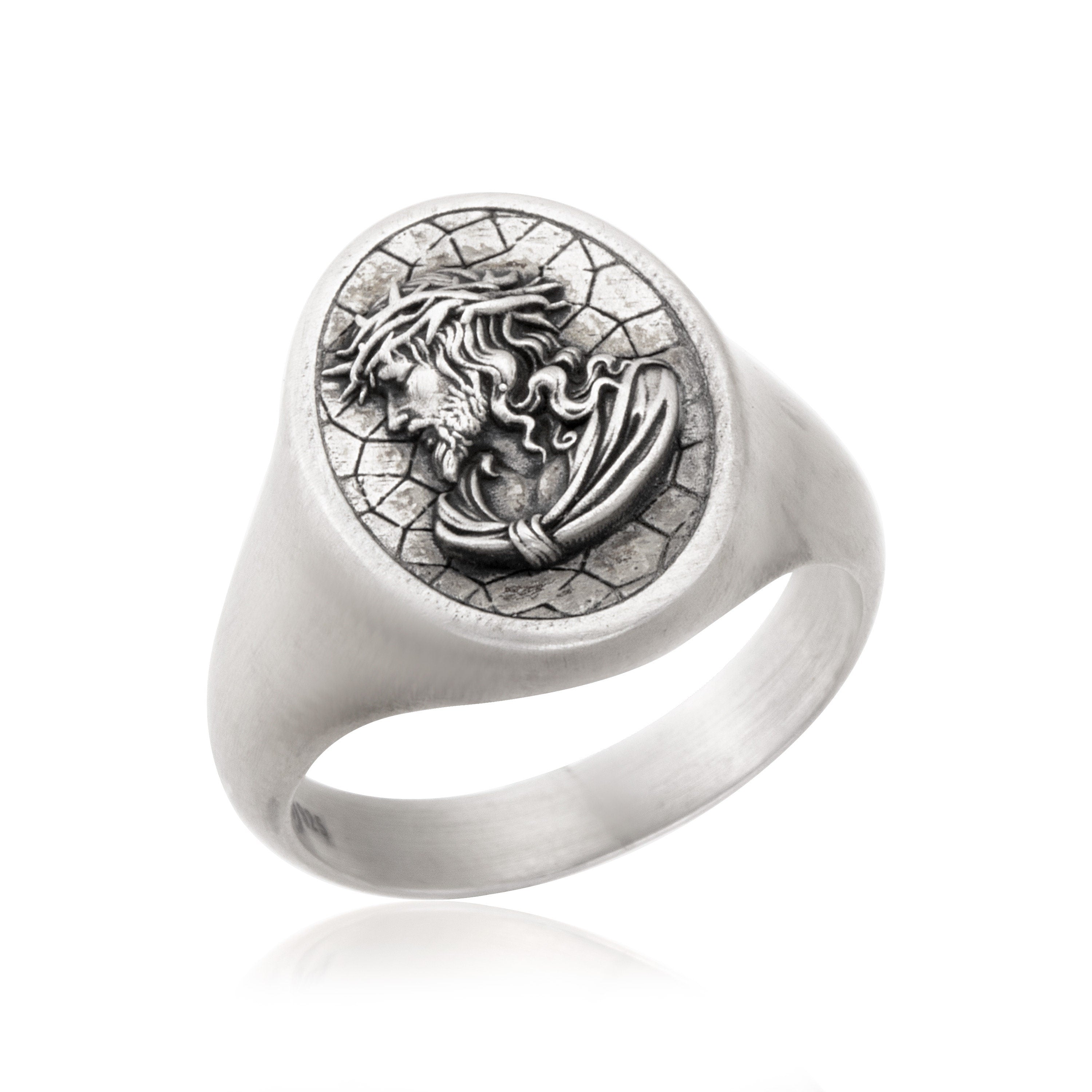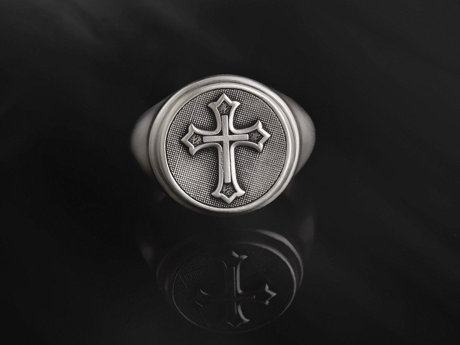Sterling Silver Cross Medal Ring, Crucifix Signet Man Rings, Religious Gift For Dad, Cross Statement Man Ring, Unique Gift For Father's Day