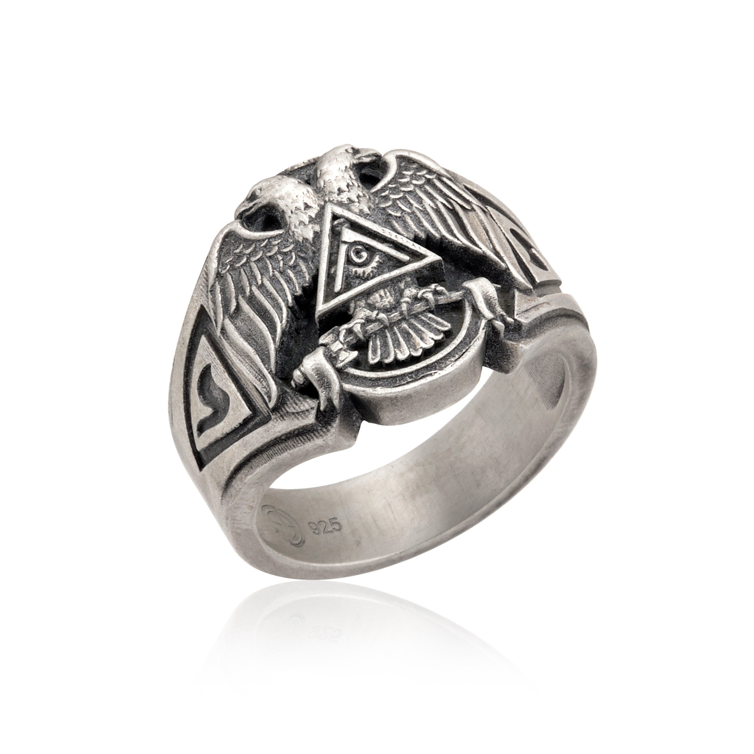 Sterling Silver Statement Masons Ring, Double Headed Masonic Eagle Ring, Freemasons Rings, Men's Signet Rings, Unique Gift For Father's Day