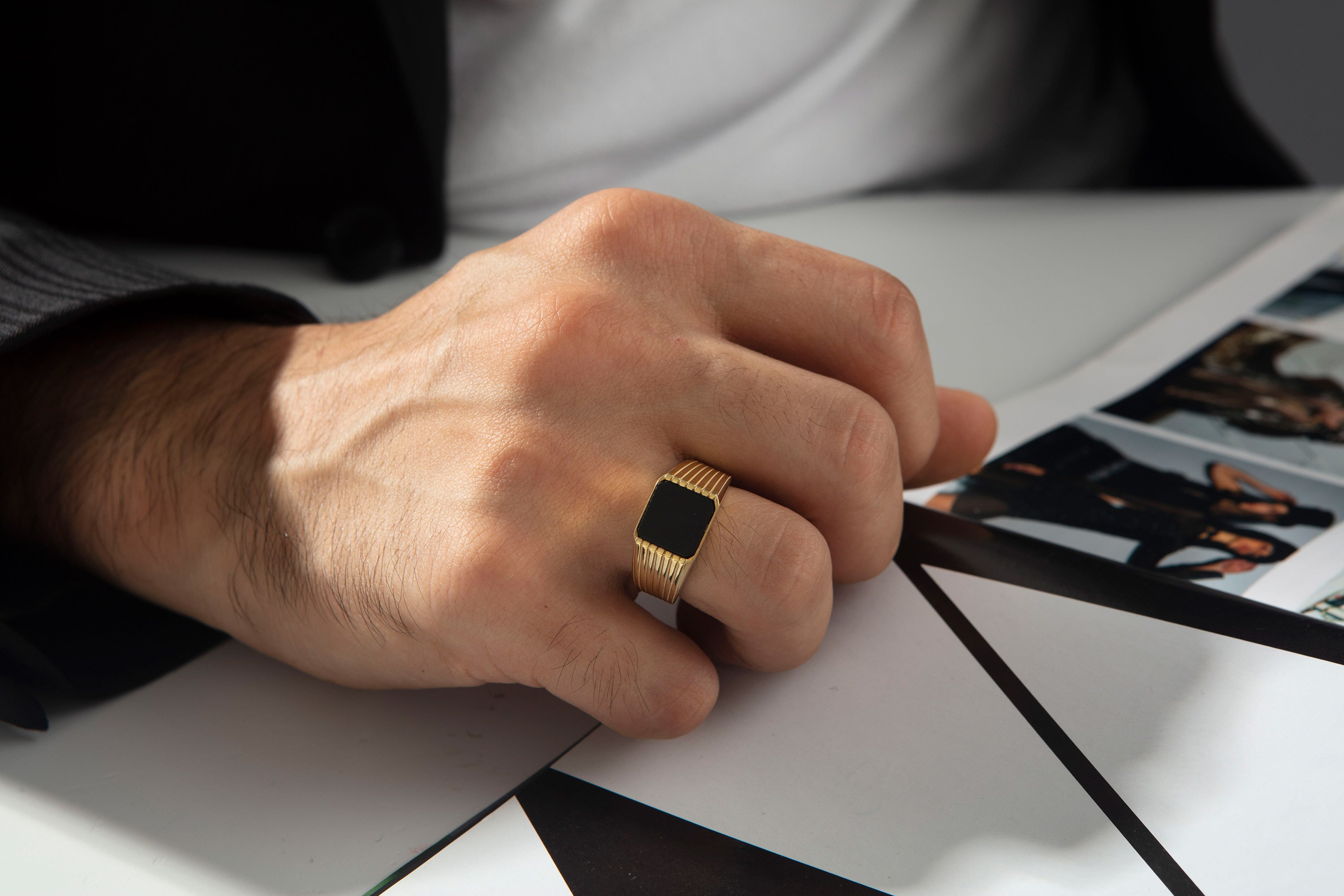 Men’s Black Onyx Square Gold Ring – Solid 10K, 14K & 18K Gold