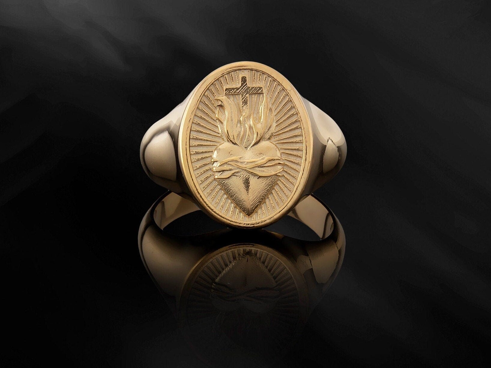 Solid Gold Sacred Heart Cross Ring - Made of 18K/14K/10K Solid Gold