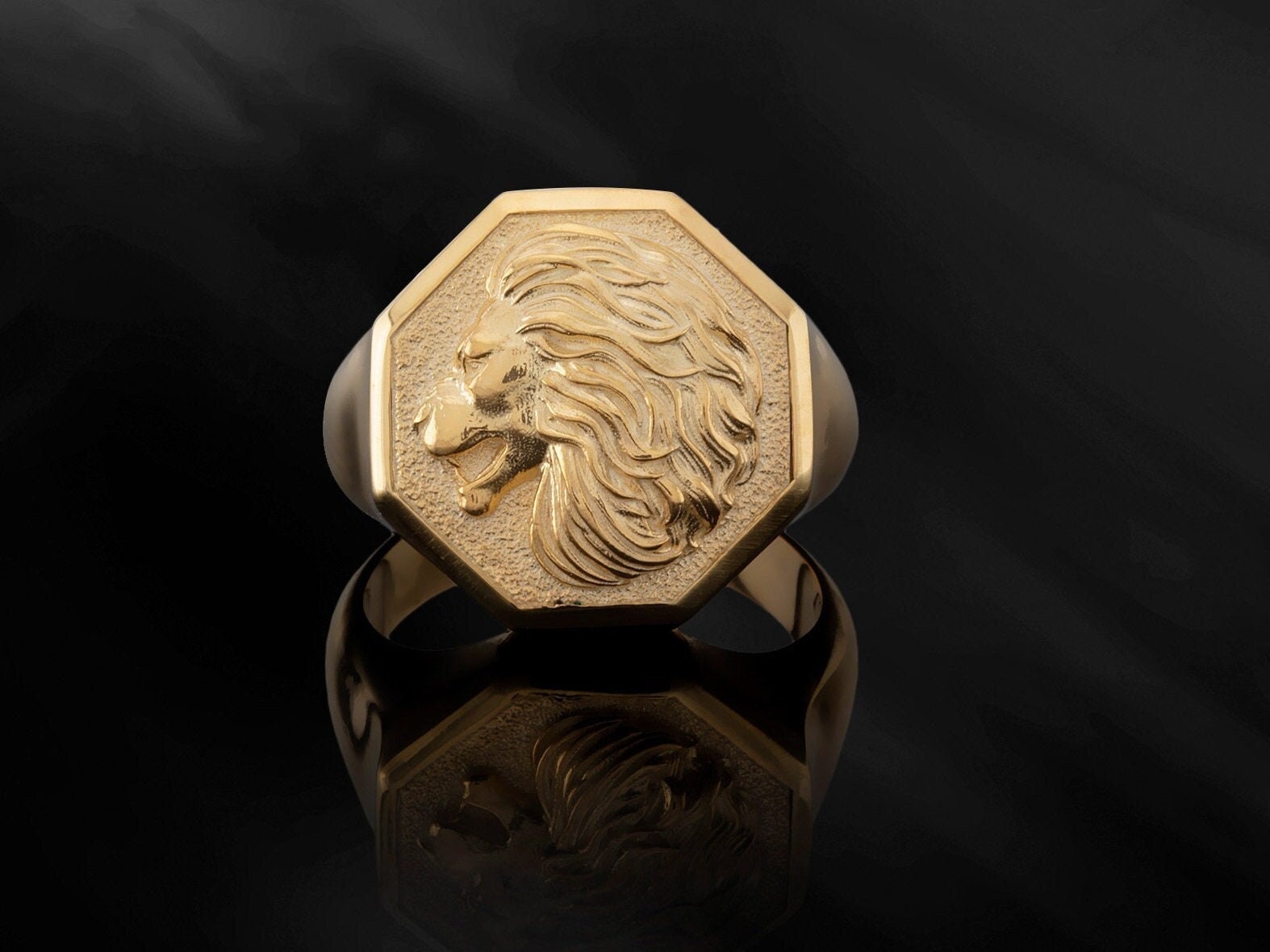 Solid Gold Lion Head Rings, 14K Gold Wild Lion Signet Ring, Gifts For Fathers, Animal Statement Rings For Men, Unique Gift For Father's Day
