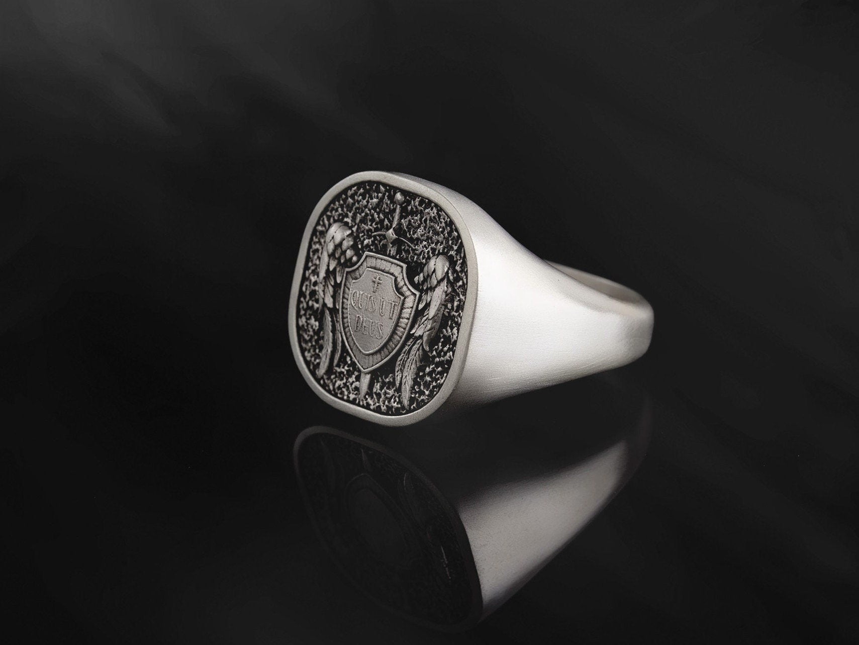 St. Michael Shield Signet Silver Ring - Archangel Michael Ring