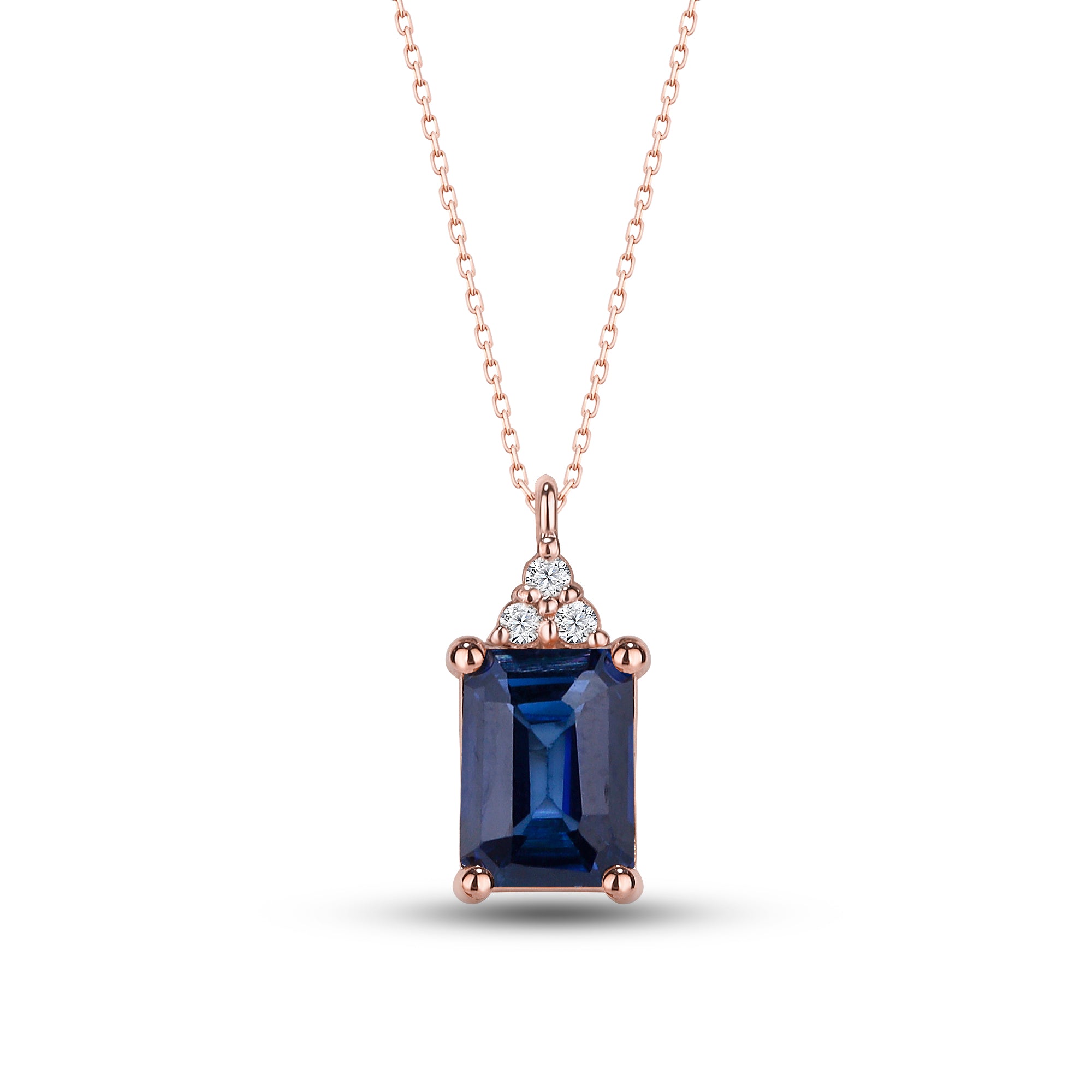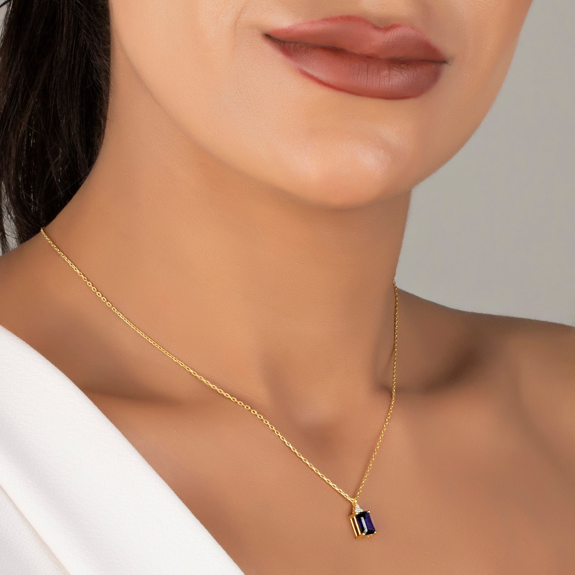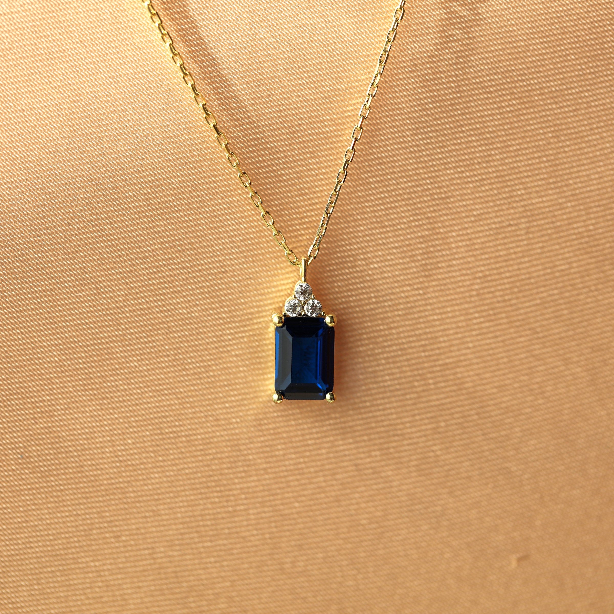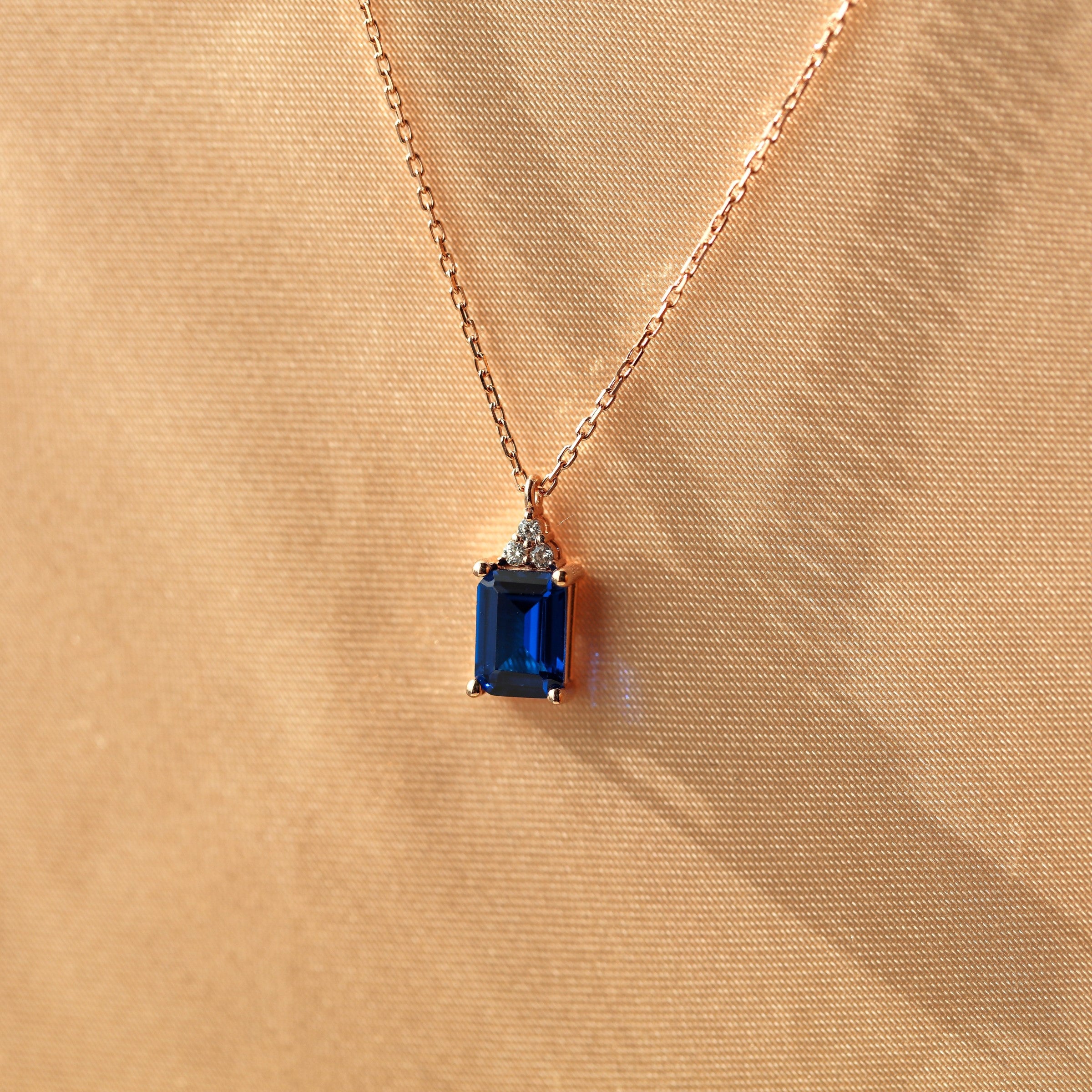 Elevate your style with this elegant emerald cut sapphire pendant necklace, accented by sparkling natural diamonds for timeless brilliance. A versatile and meaningful piece, perfect as a birthday, anniversary, or Valentine’s Day gift for her.