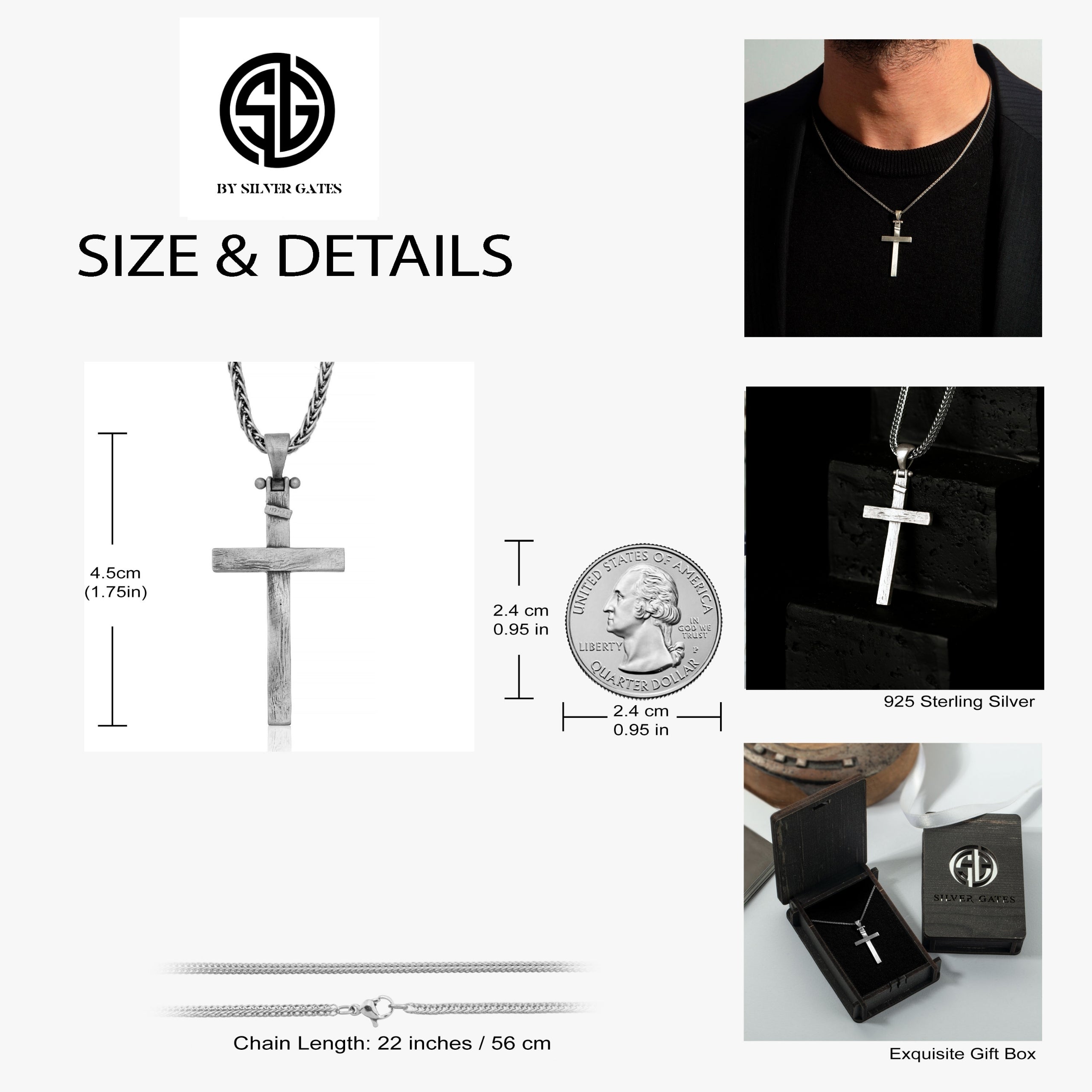 925 Sterling Silver Men’s Cross Pendant Necklace