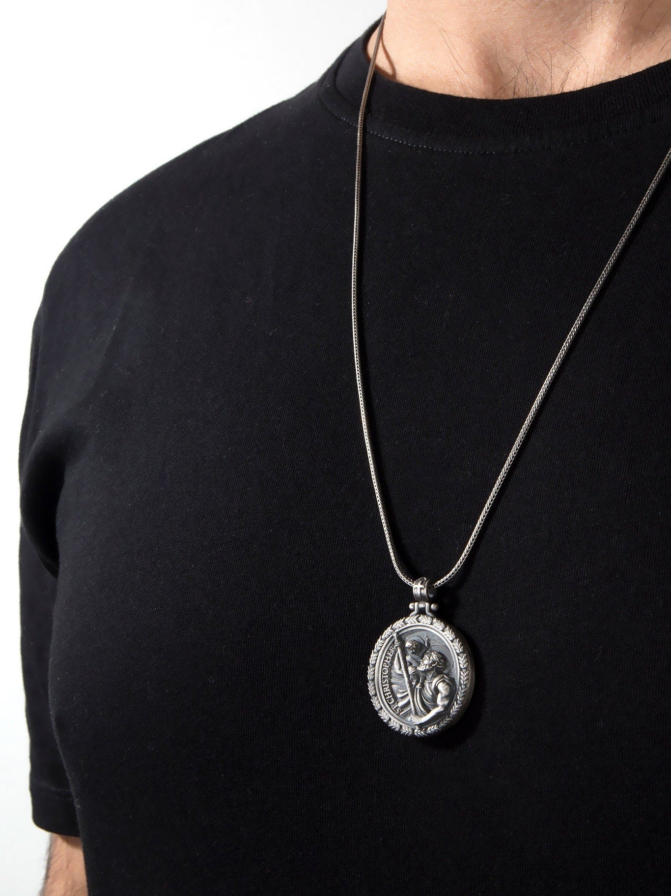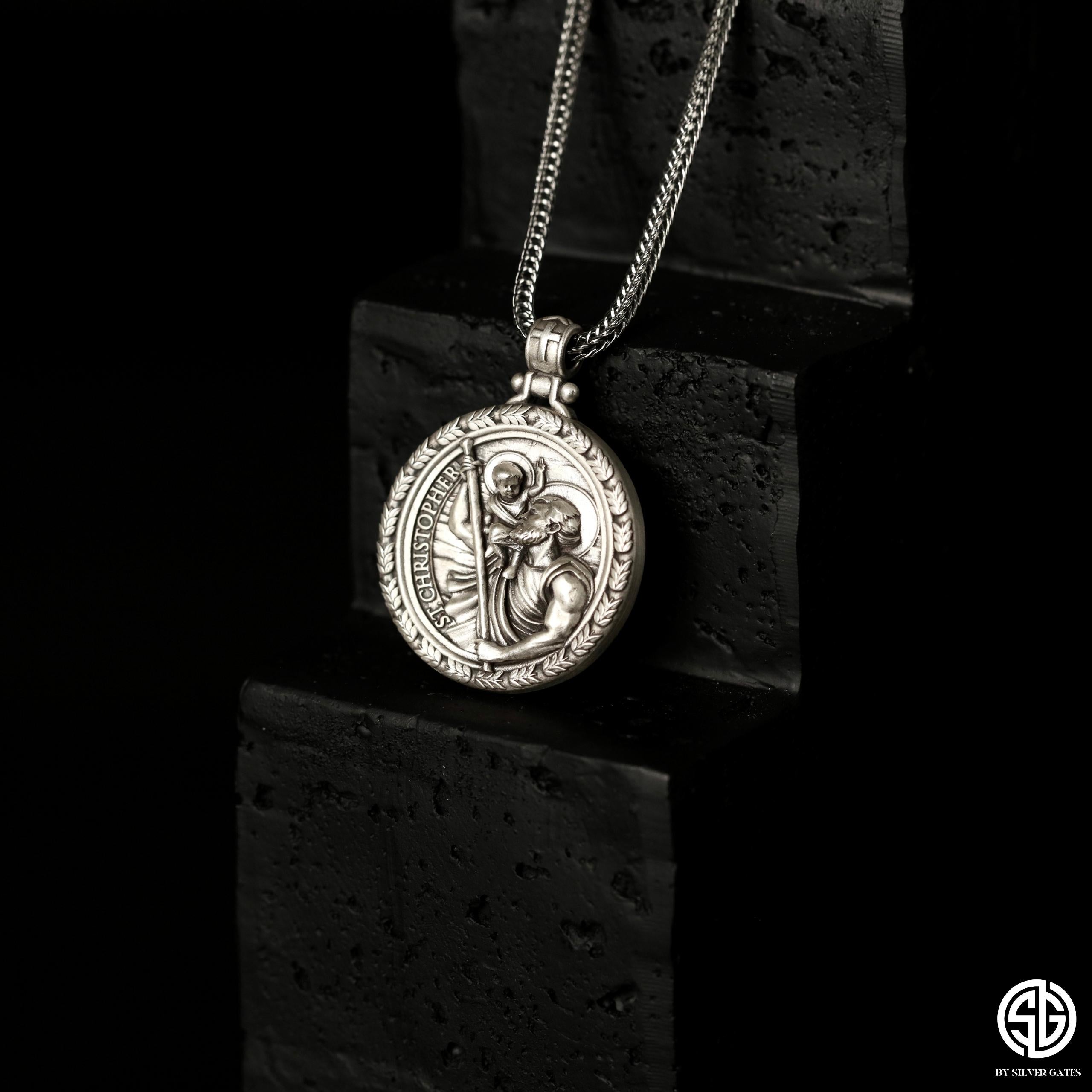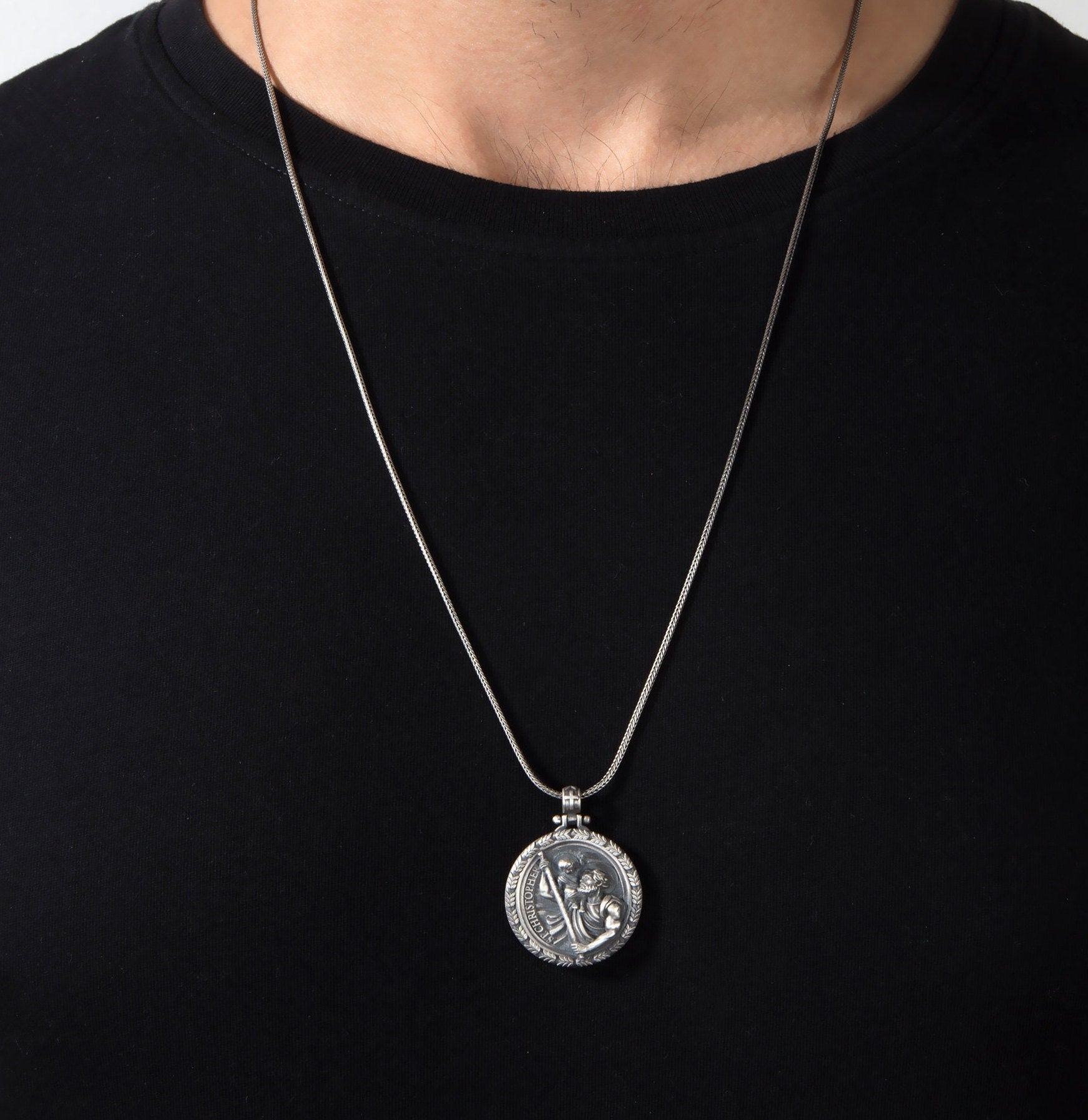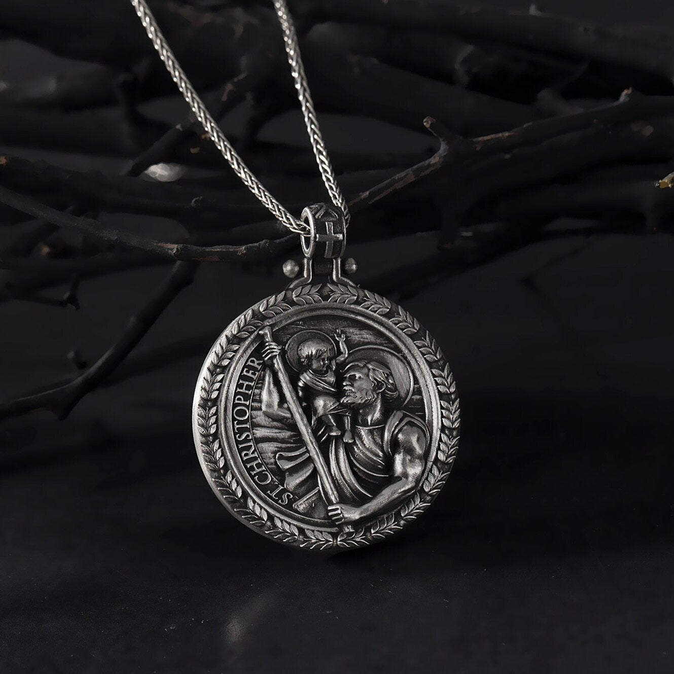 Silver Saint Christopher Necklace, St Christopher Pendants, Catholic Religious Jewelry, Birthday Gifts For Men, Unique Gift For Father's Day